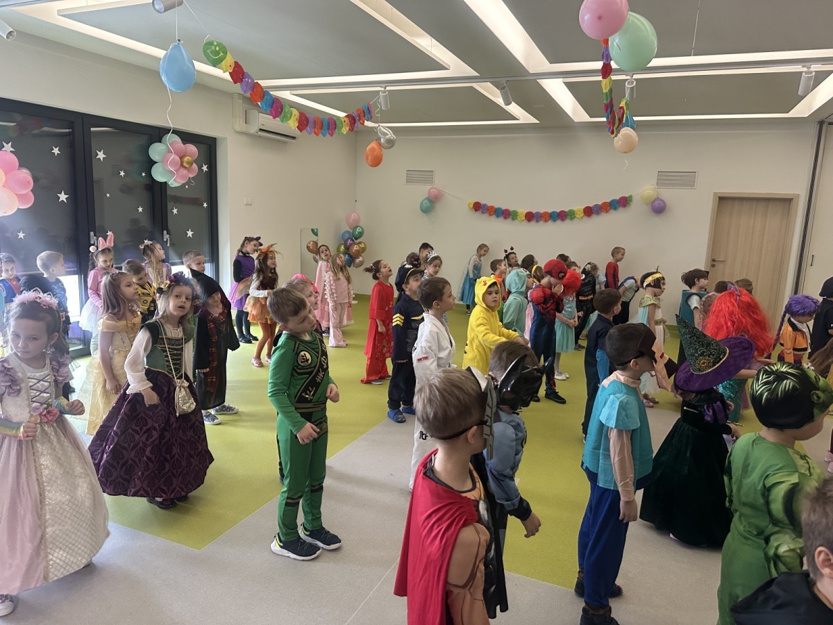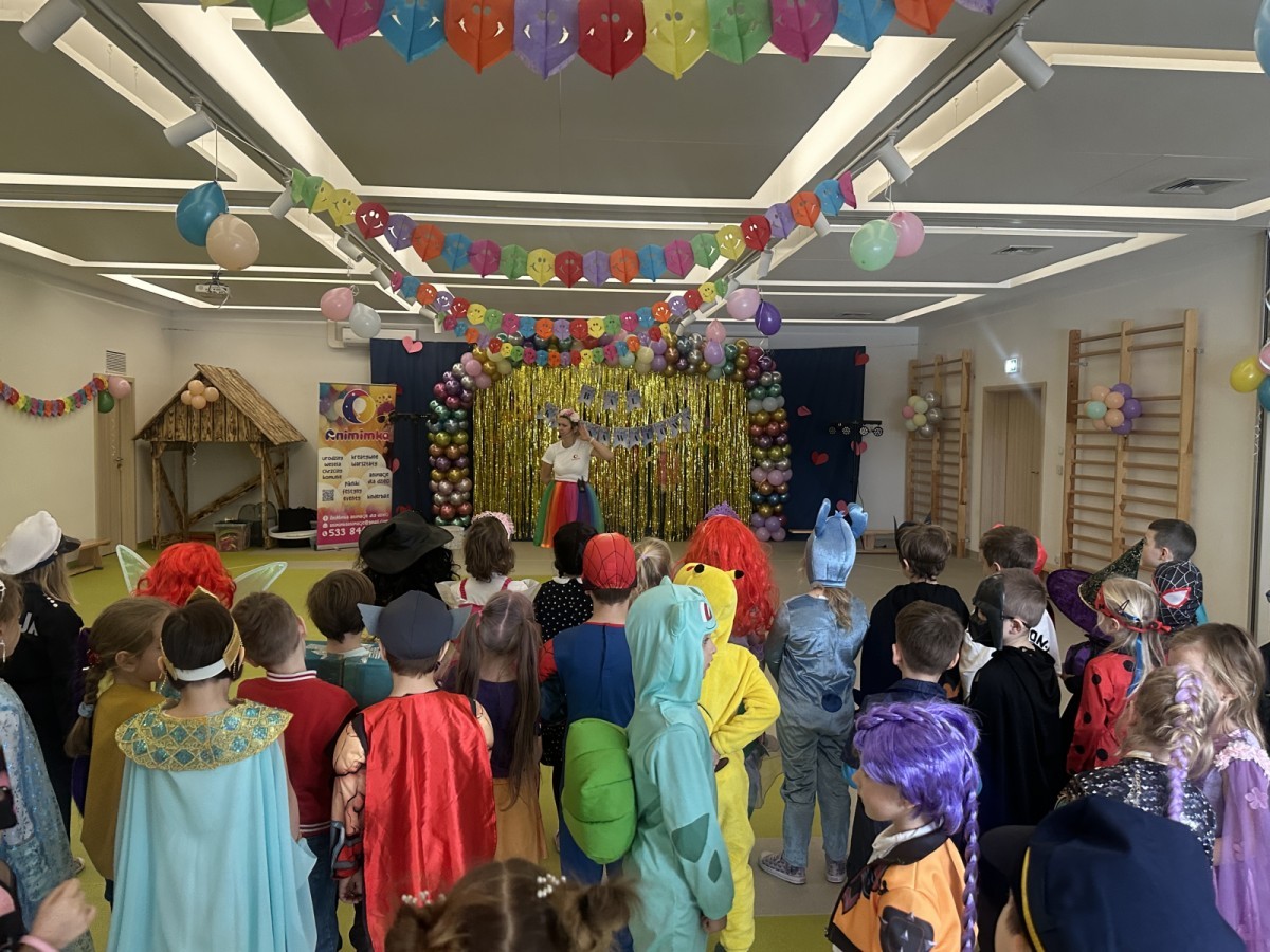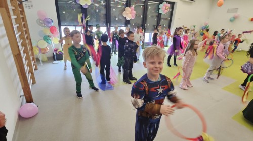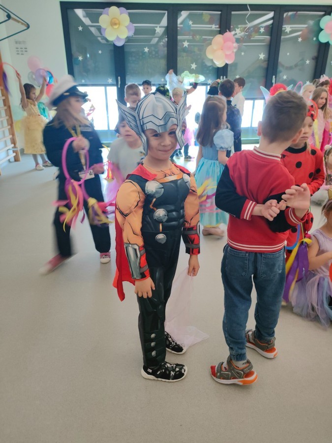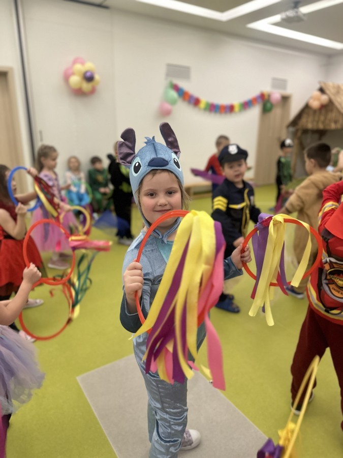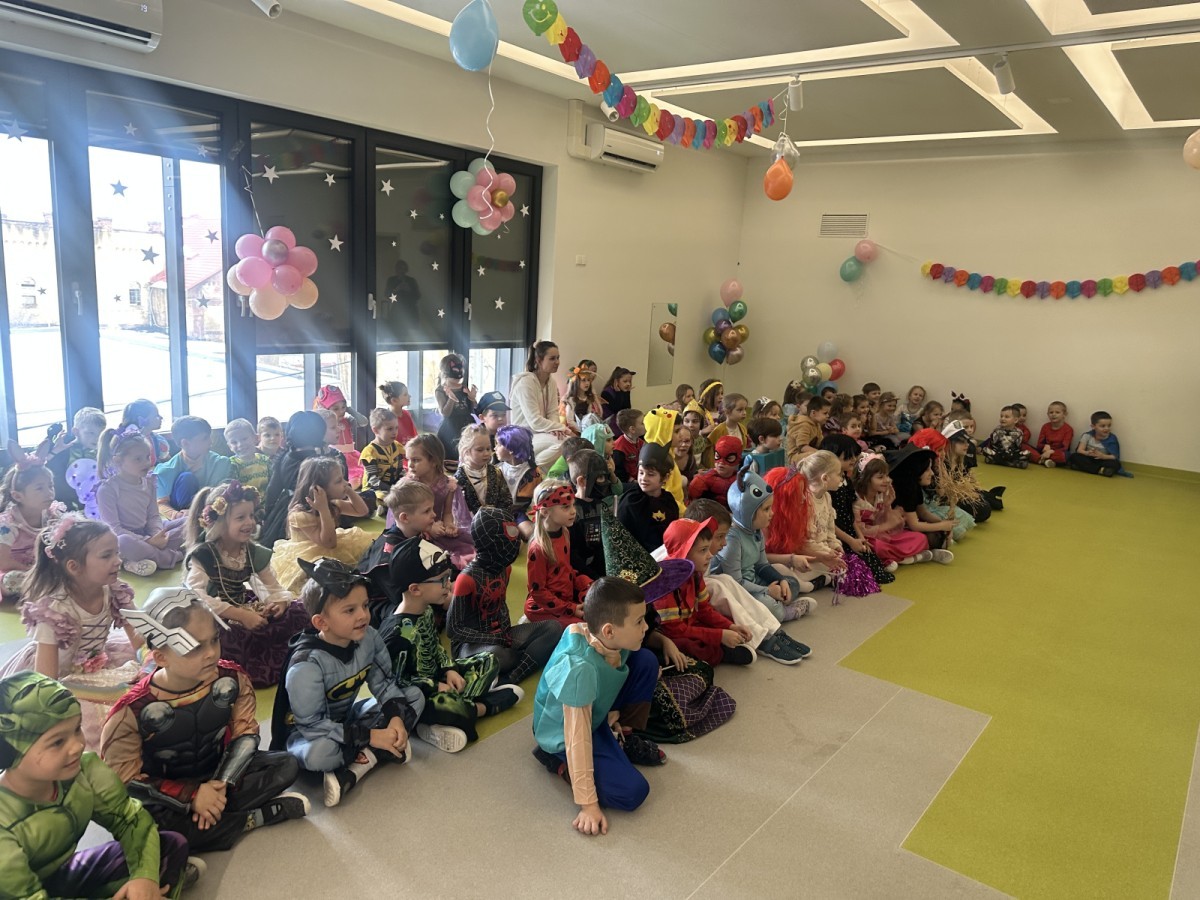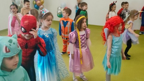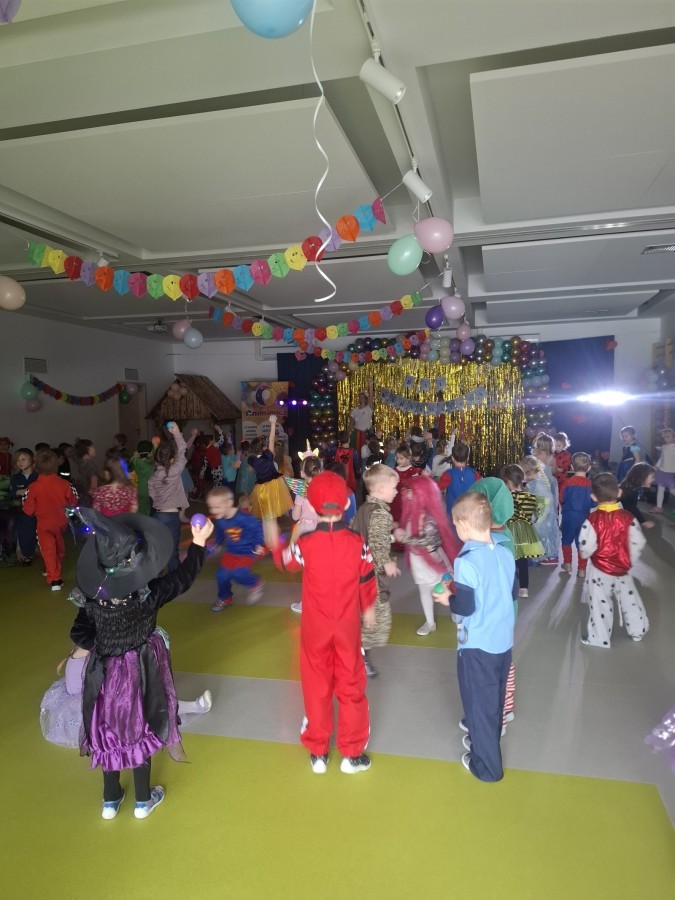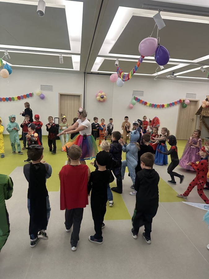 W naszym przedszkolu odbył się radosny bal karnawałowy! Dzieci zachwyciły kolorowymi przebraniami – na sali pojawiły się księżniczki, superbohaterowie, zwierzątka i wiele innych bajkowych postaci.