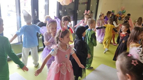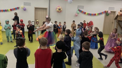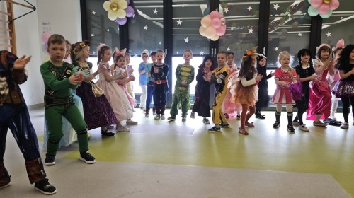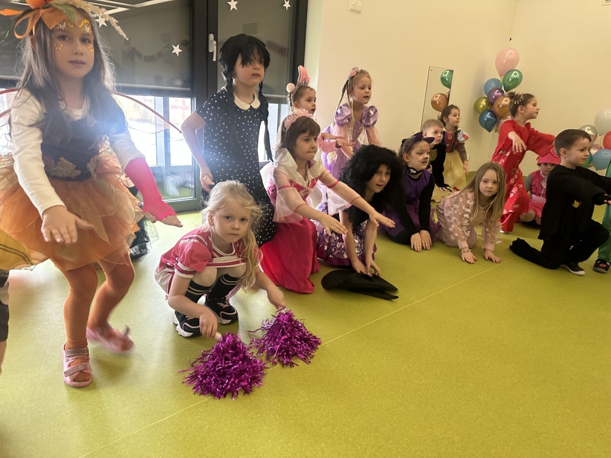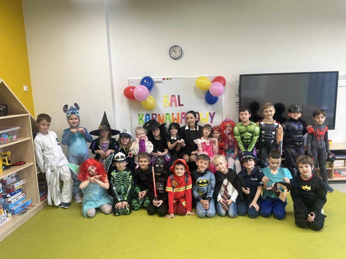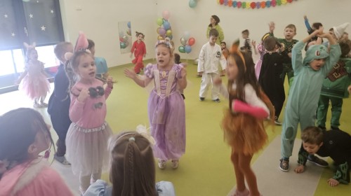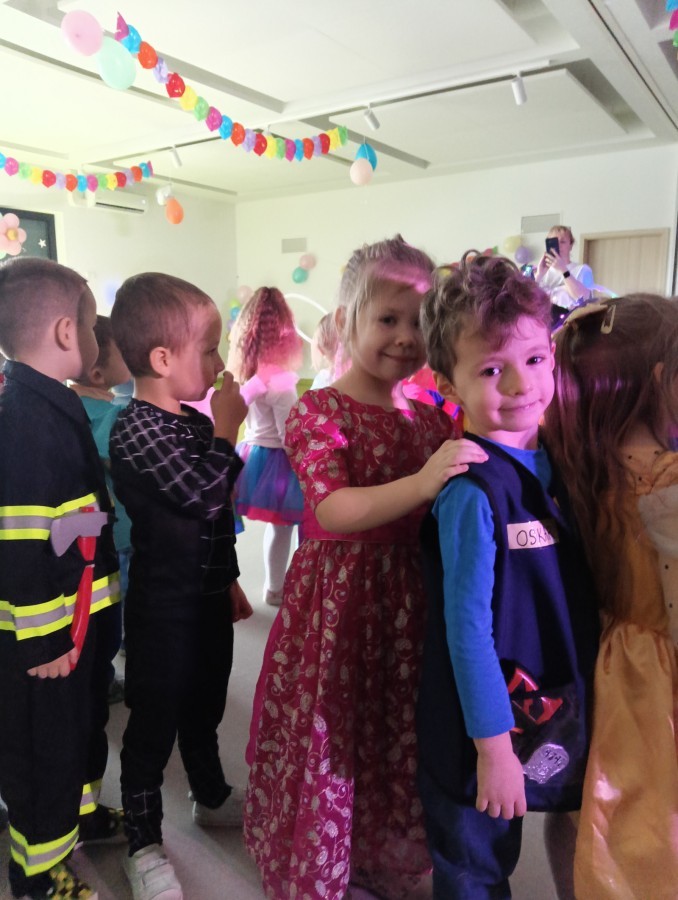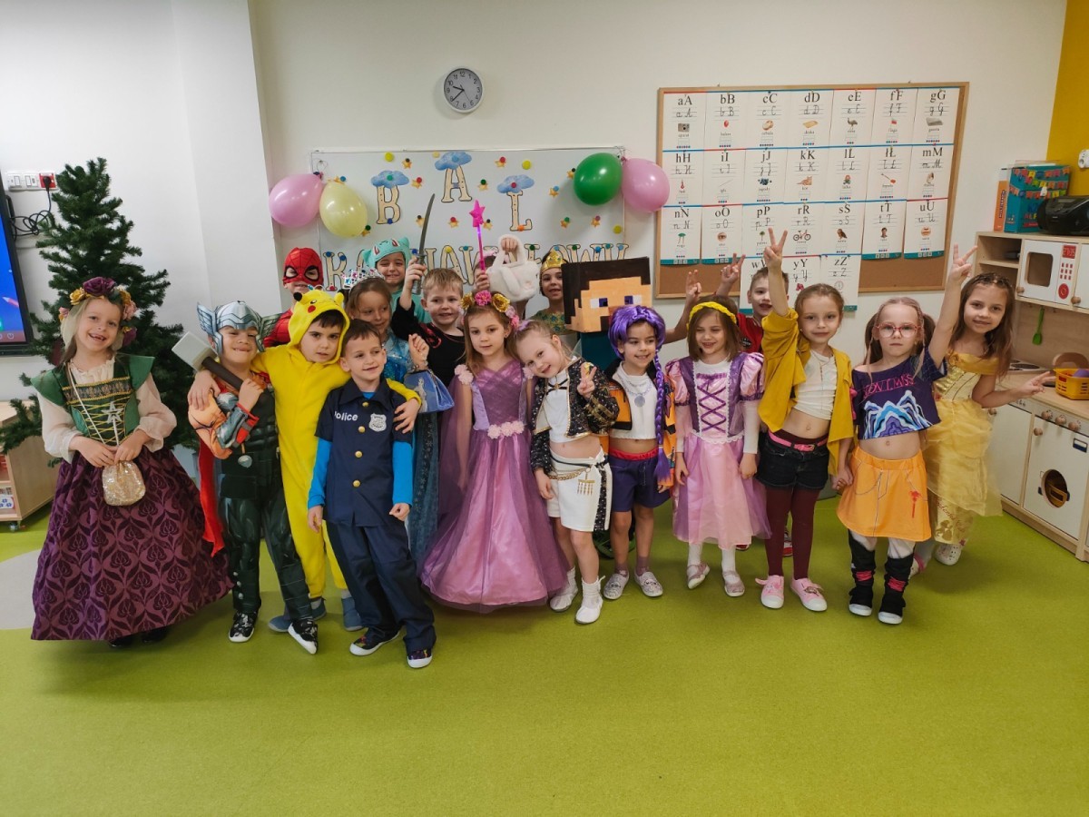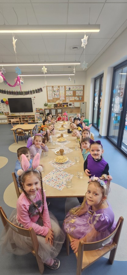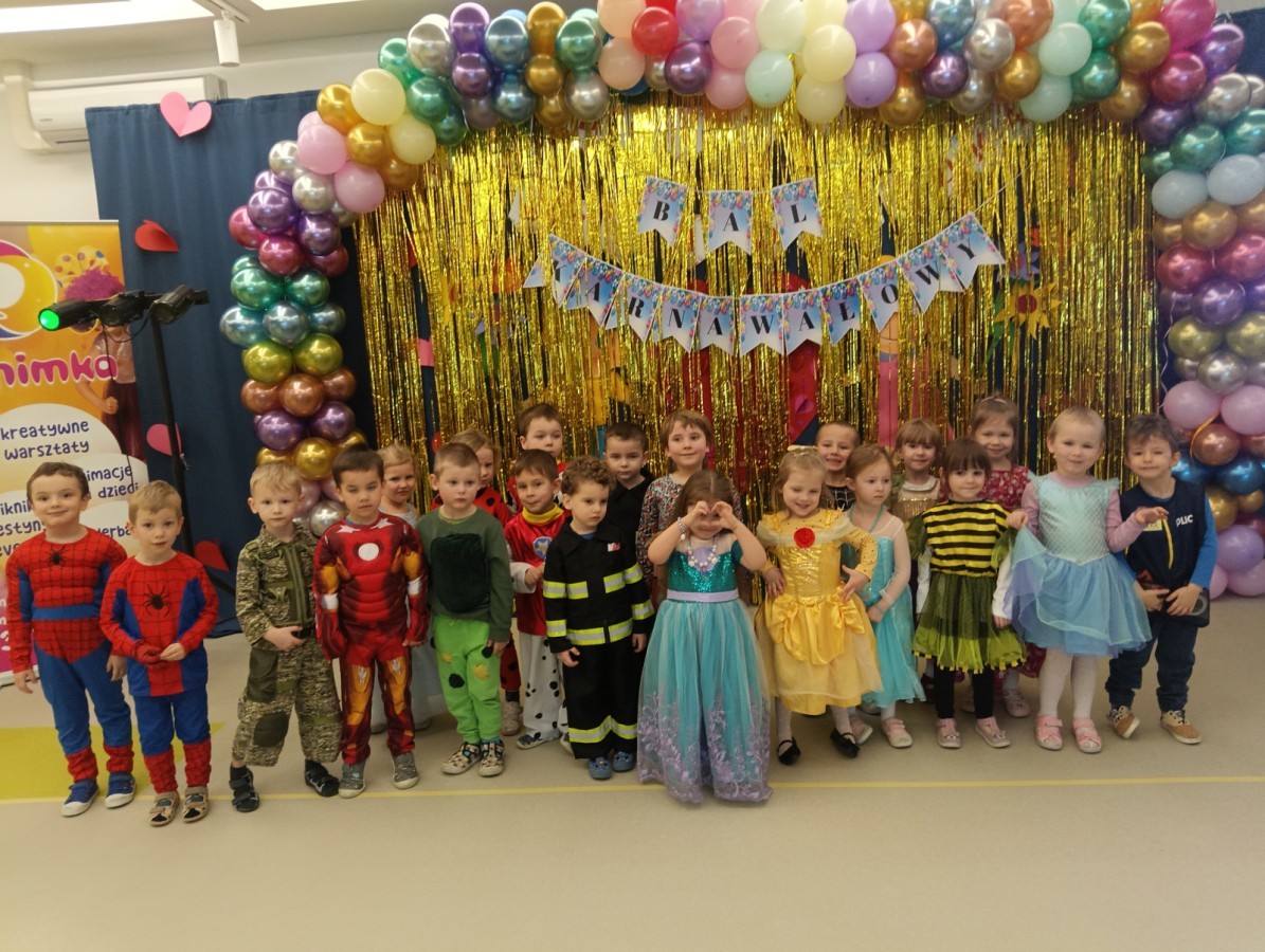 W naszym przedszkolu odbył się radosny bal karnawałowy! Dzieci zachwyciły kolorowymi przebraniami – na sali pojawiły się księżniczki, superbohaterowie, zwierzątka i wiele innych bajkowych postaci.
