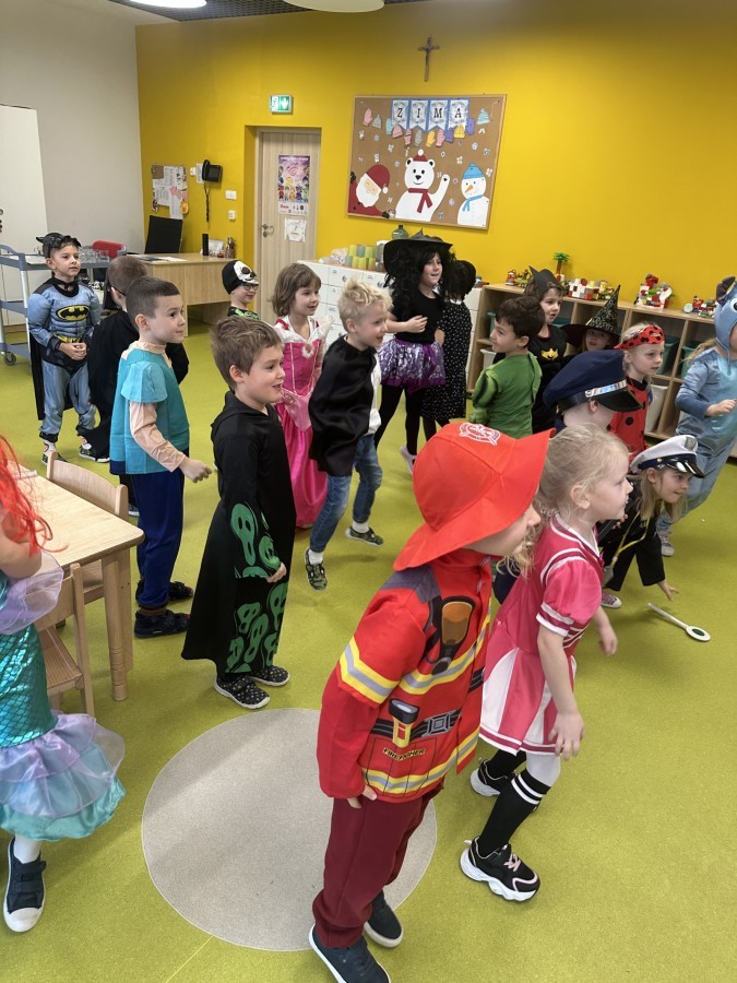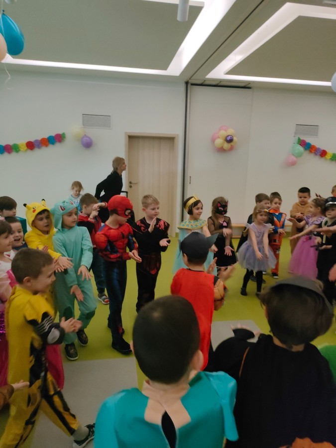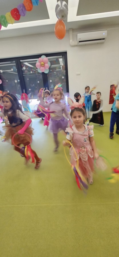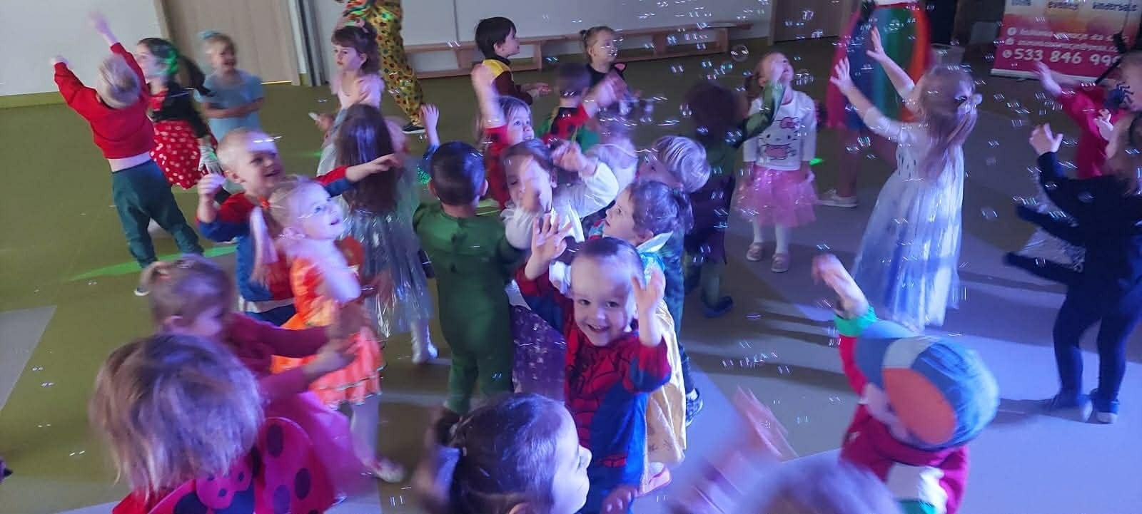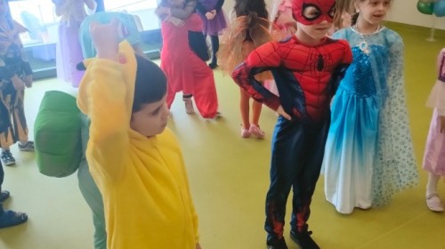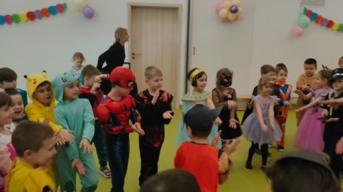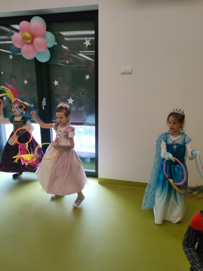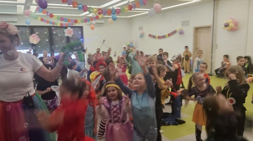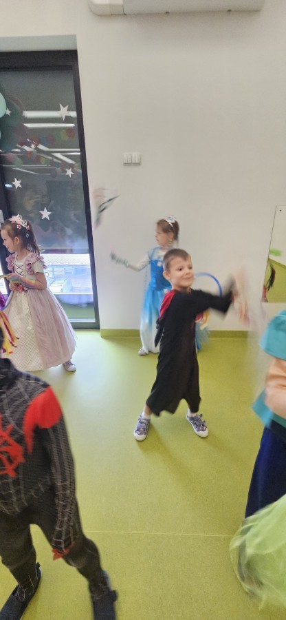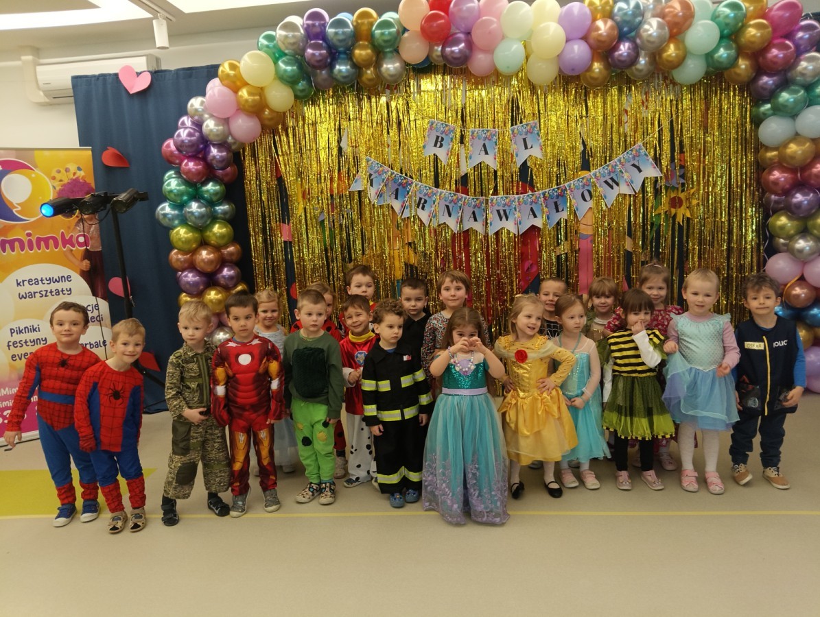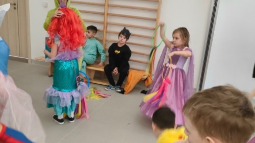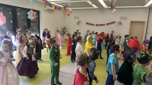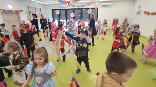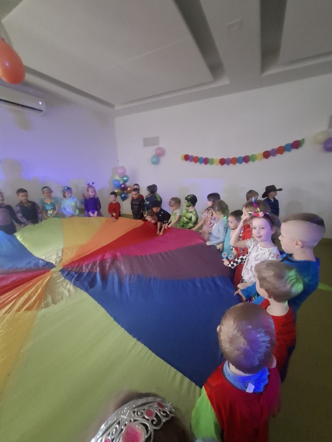 W naszym przedszkolu odbył się radosny bal karnawałowy! Dzieci zachwyciły kolorowymi przebraniami – na sali pojawiły się księżniczki, superbohaterowie, zwierzątka i wiele innych bajkowych postaci.