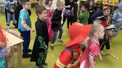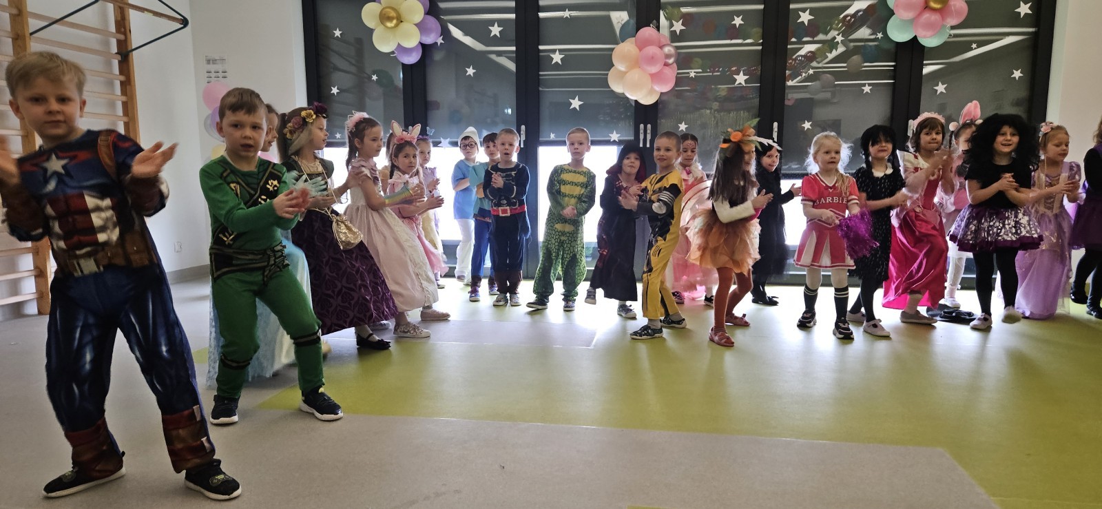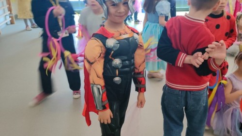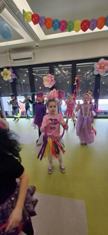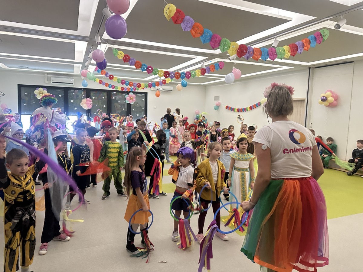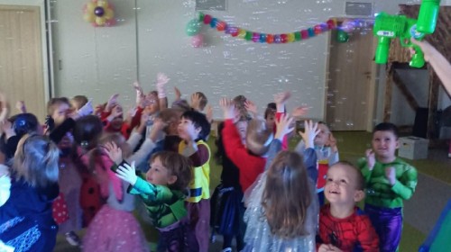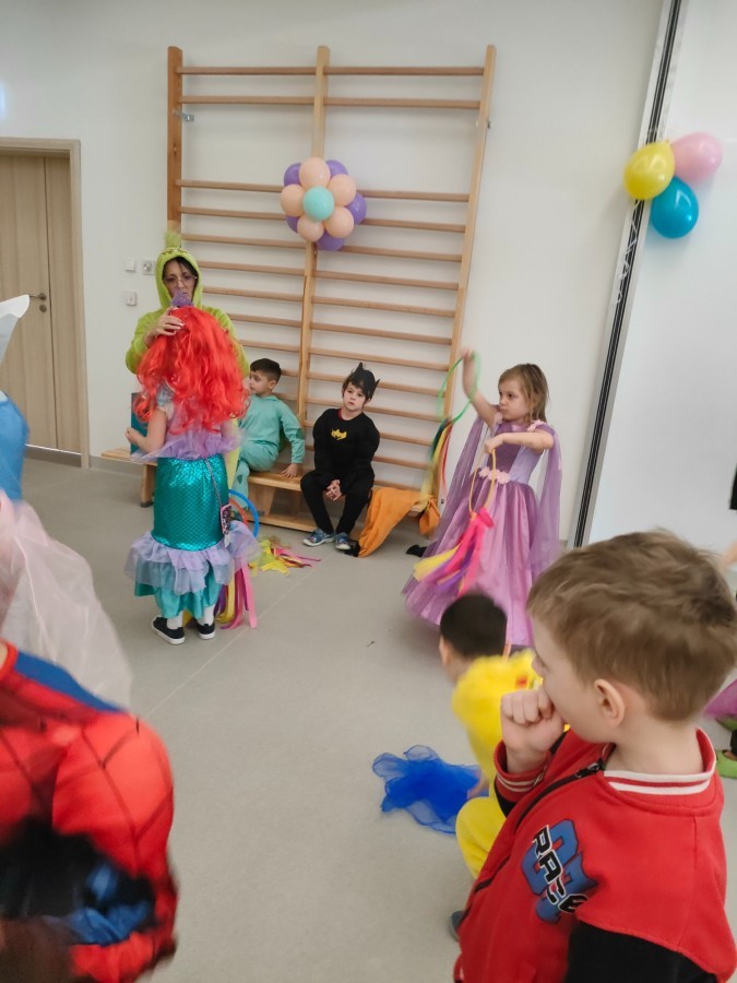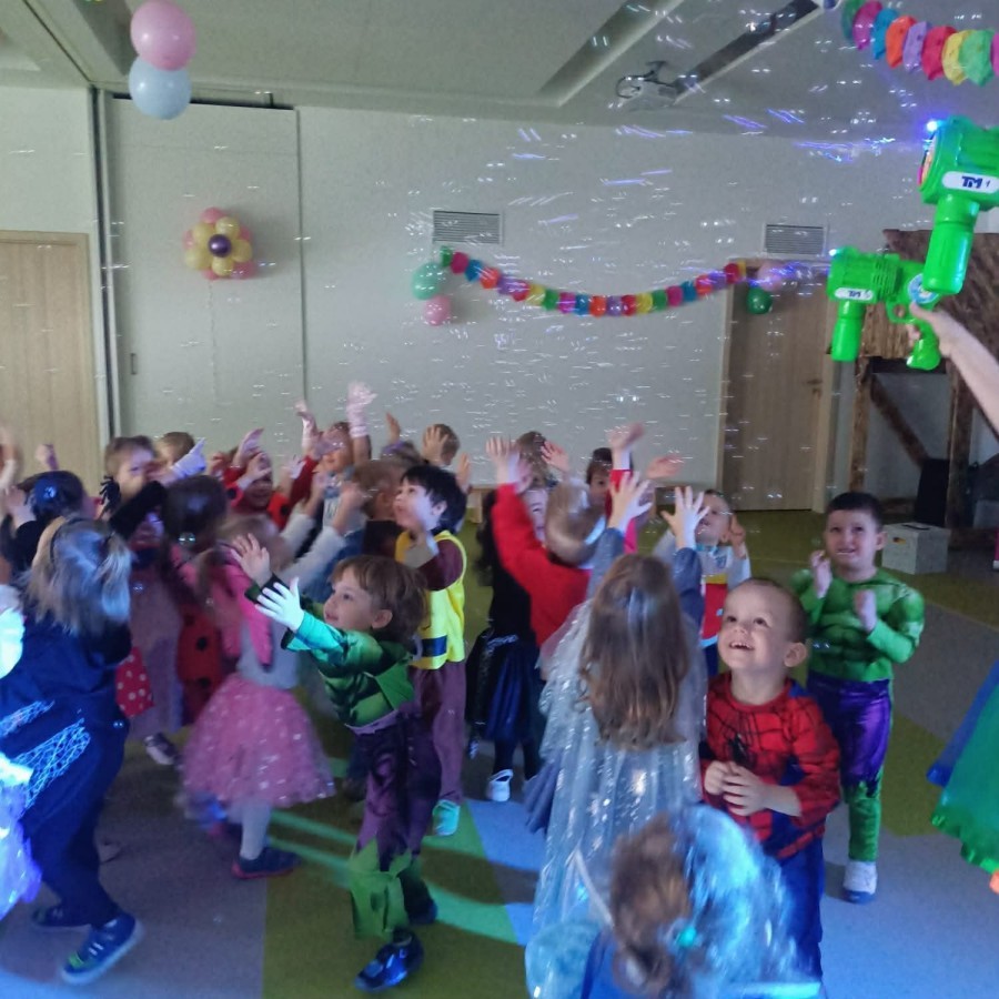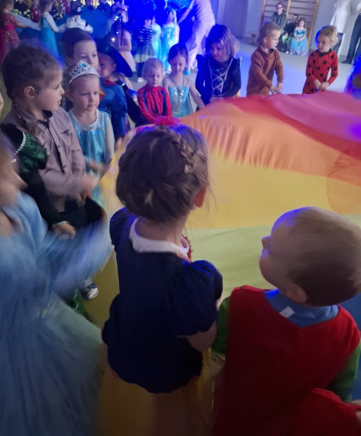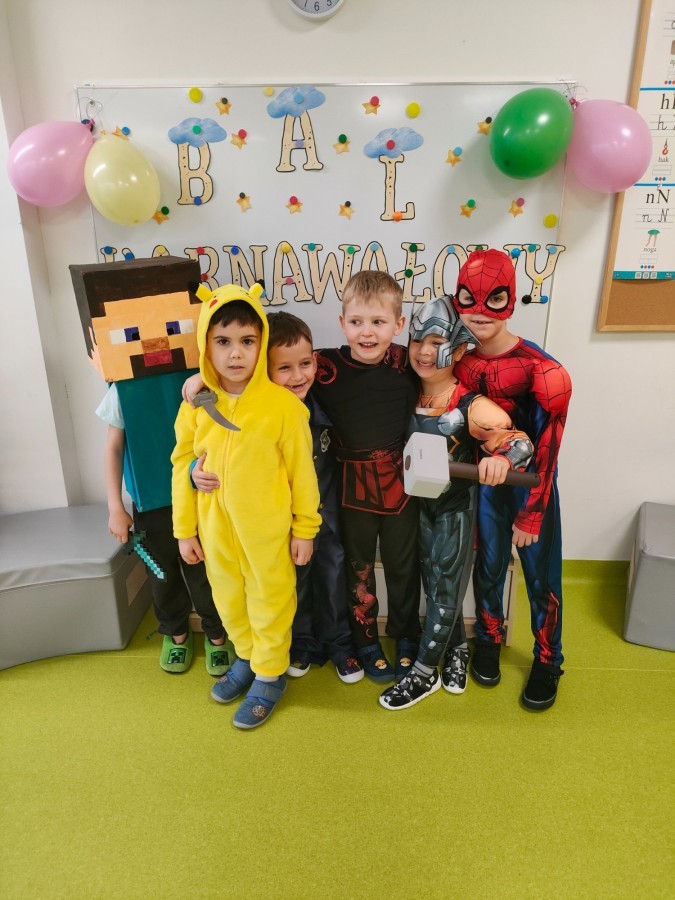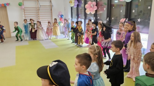W naszym przedszkolu odbył się radosny bal karnawałowy! Dzieci zachwyciły kolorowymi przebraniami – na sali pojawiły się księżniczki, superbohaterowie, zwierzątka i wiele innych bajkowych postaci.