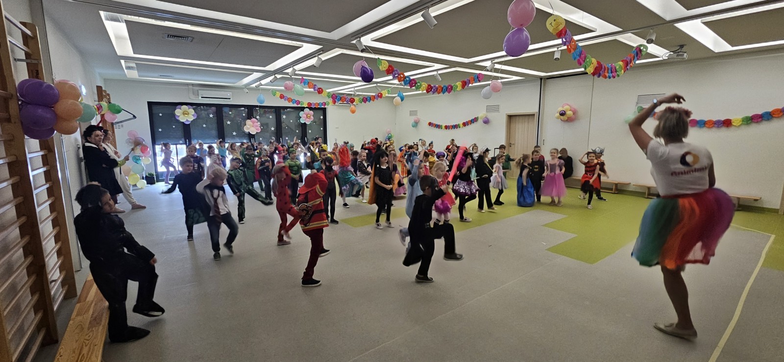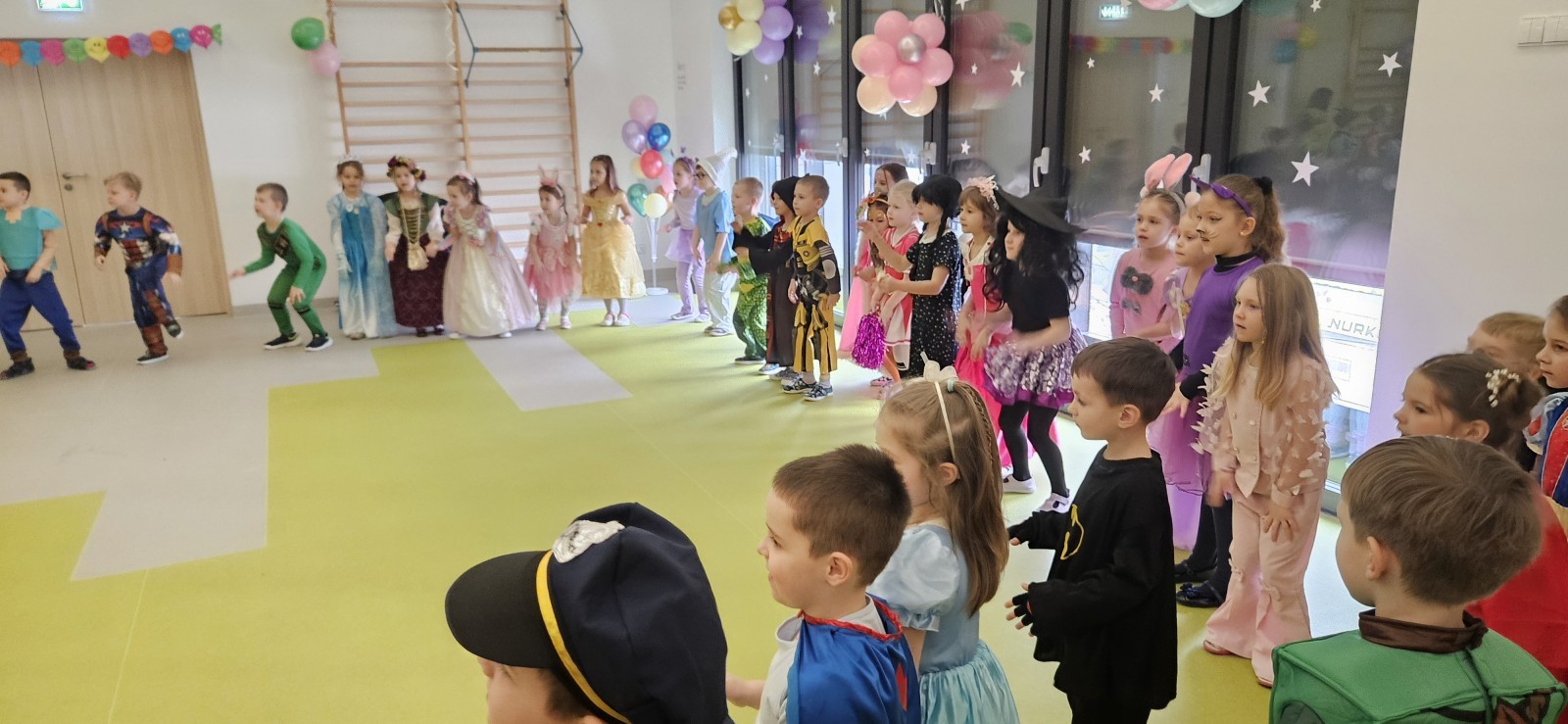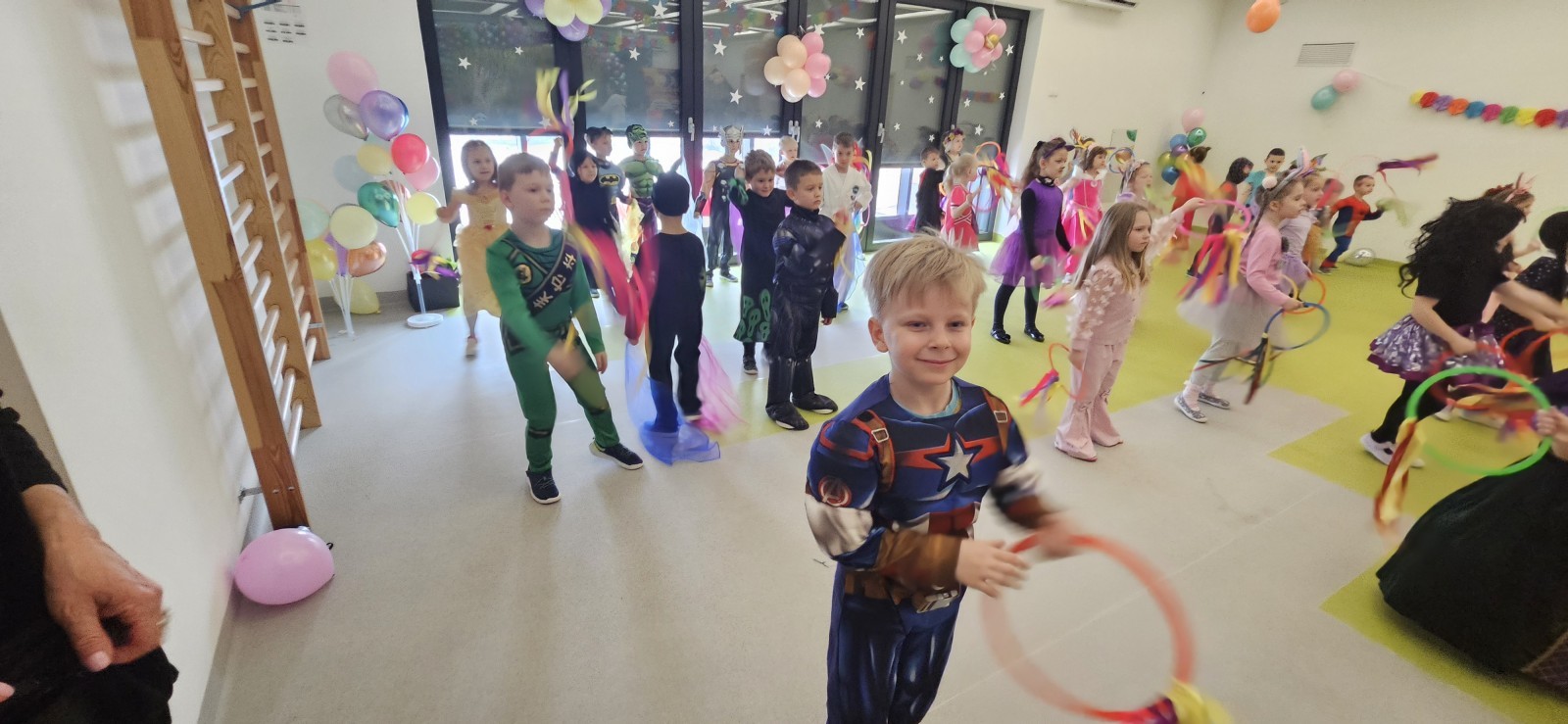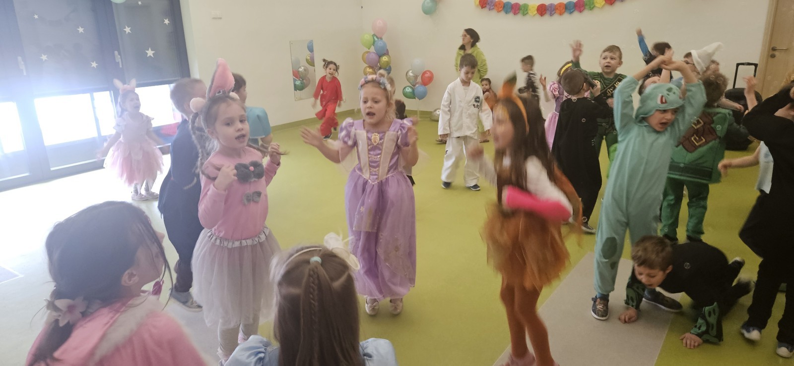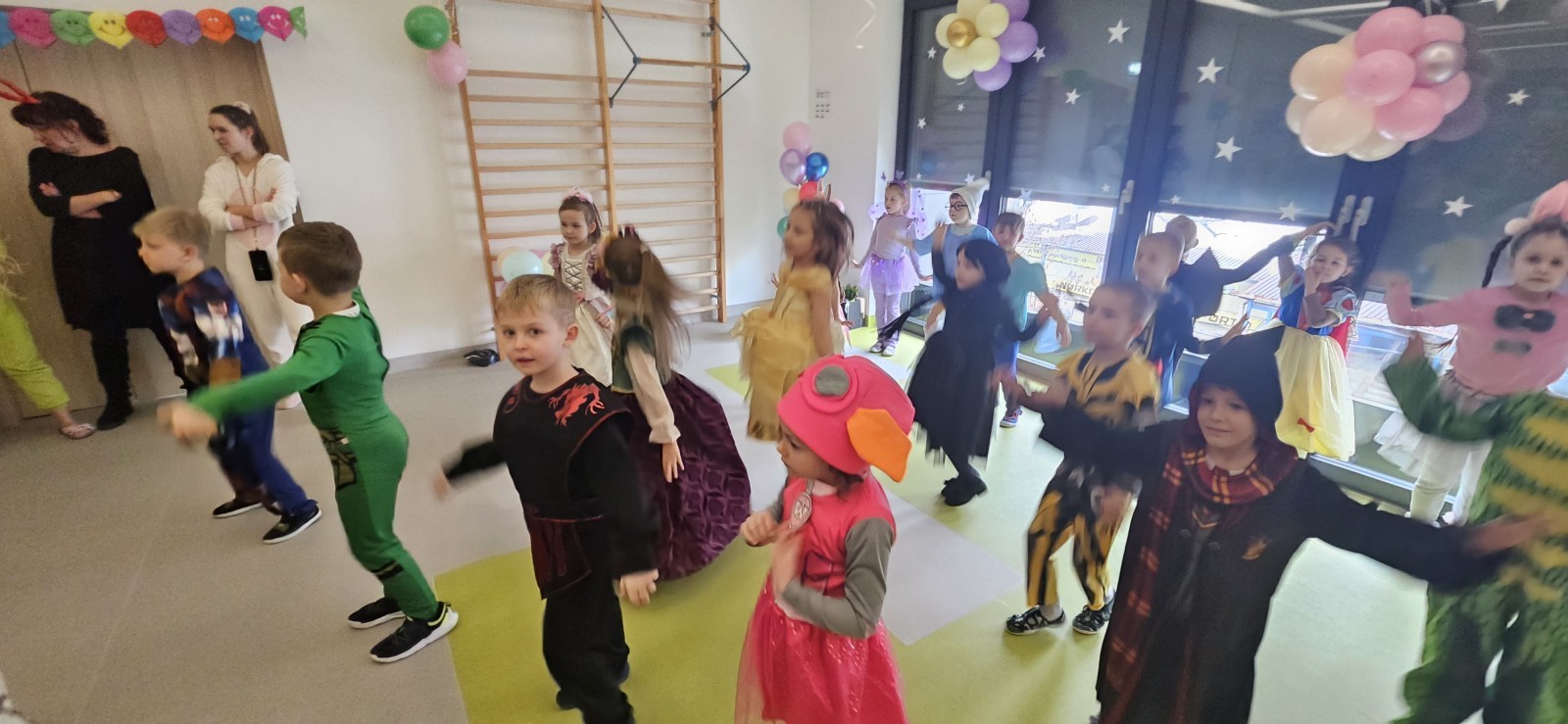 W naszym przedszkolu odbył się radosny bal karnawałowy! Dzieci zachwyciły kolorowymi przebraniami – na sali pojawiły się księżniczki, superbohaterowie, zwierzątka i wiele innych bajkowych postaci.