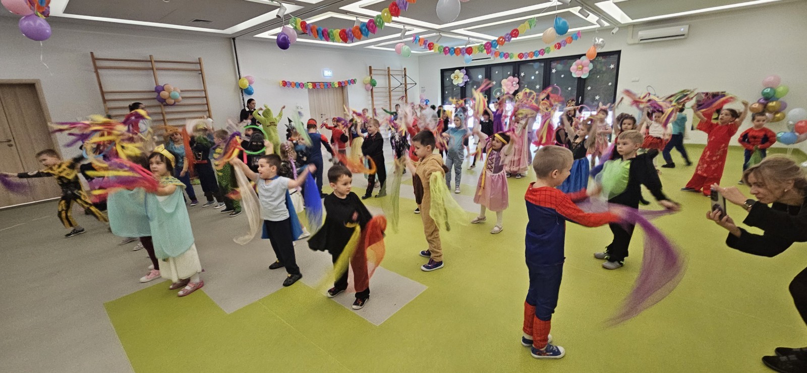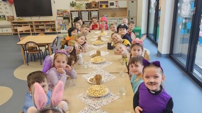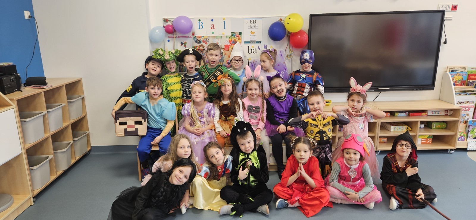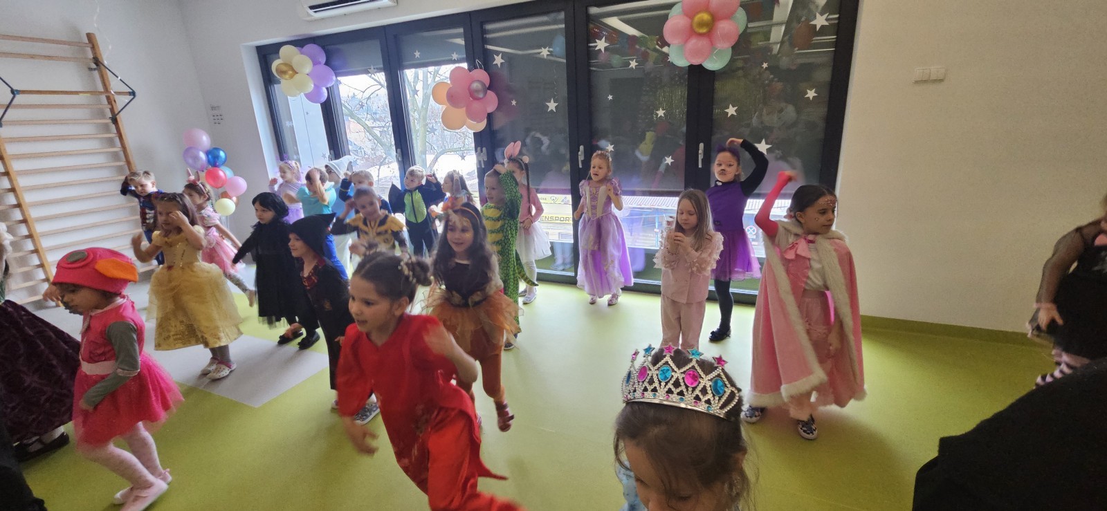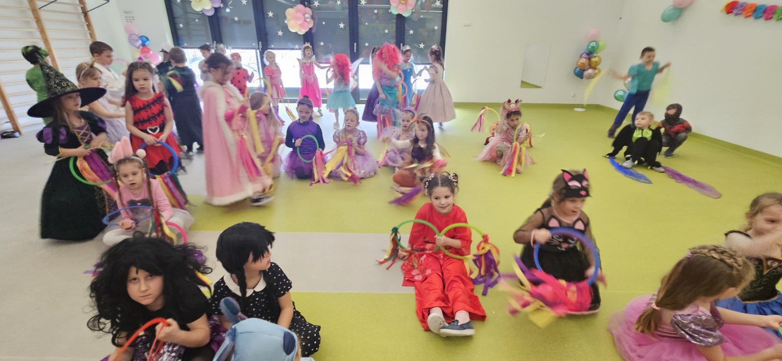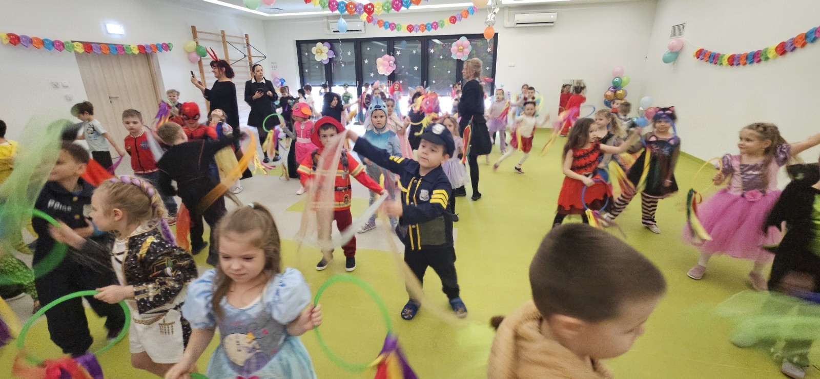 W naszym przedszkolu odbył się radosny bal karnawałowy! Dzieci zachwyciły kolorowymi przebraniami – na sali pojawiły się księżniczki, superbohaterowie, zwierzątka i wiele innych bajkowych postaci.