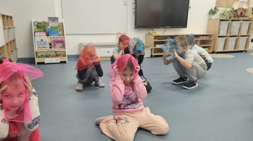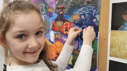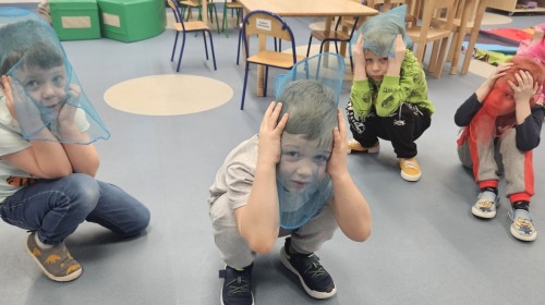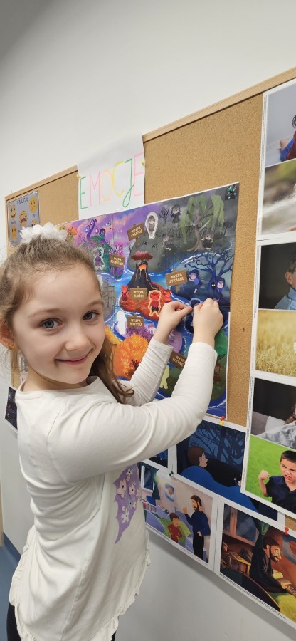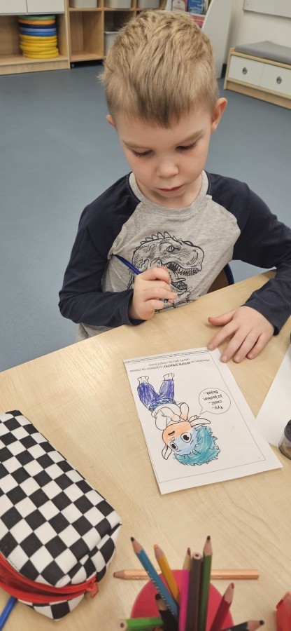 Dzieci z grupy „Jagódek” realizowały kolejne zadanie z projektu „Czuciaki z Krainy Emocji”, którego bohaterem był Bojek z Wyspy Strachu. Zajęcia miały na celu oswojenie emocji strachu oraz pokazanie dzieciom, że jest ona naturalna i potrzebna. Realizacja projektu obejmowała wysłuchanie bajki o Bojku z Wyspy Strachu oraz rozmowę na jej temat. Rozmawiały o sytuacjach, w których odczuwają strach, oraz o sposobach radzenia sobie z trudnymi emocjami. Dzieci brały udział w zabawach ruchowych do piosenki, w której pojawiały się różne emocje, a także uczestniczyły w zabawie z światłem i cieniem, który pomógł im w bezpieczny sposób oswoić uczucie strachu. Na zakończenie przedszkolaki wykonały zadanie w zeszytach projektowych.