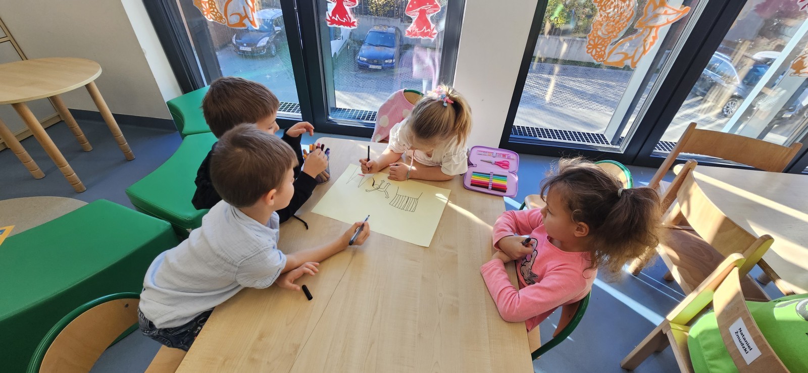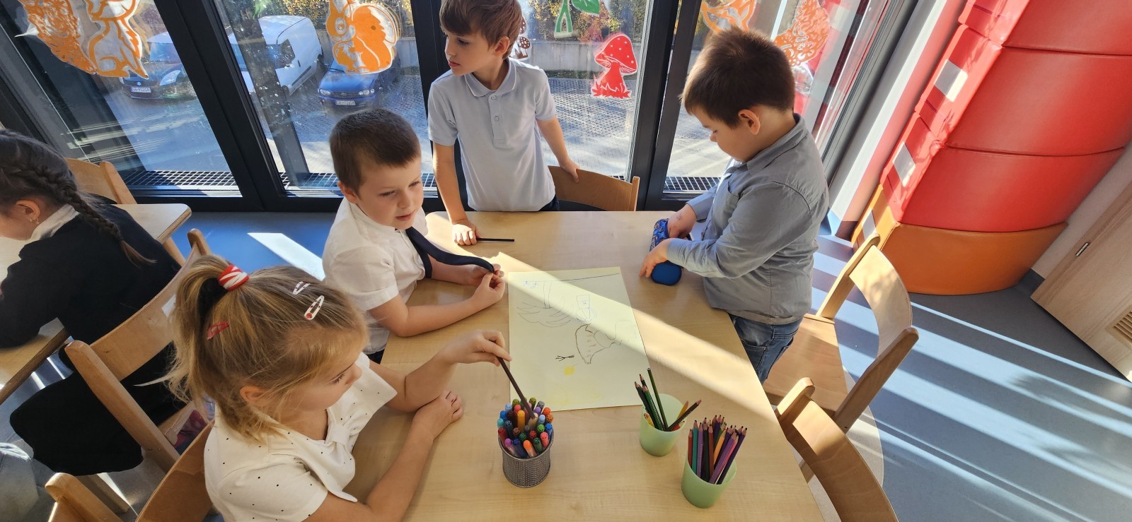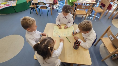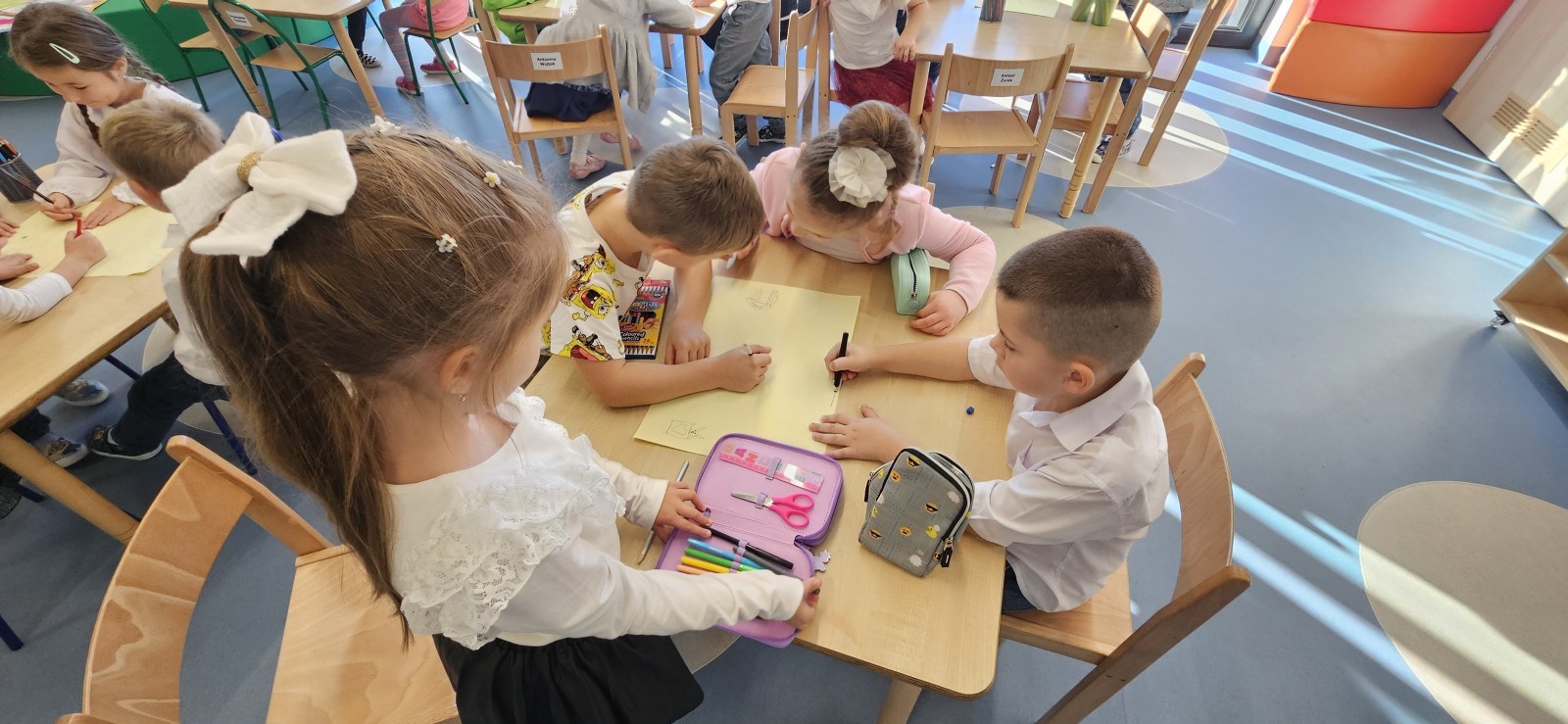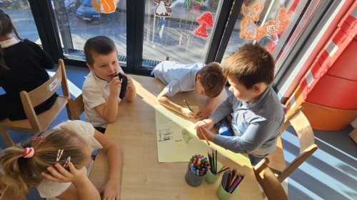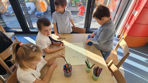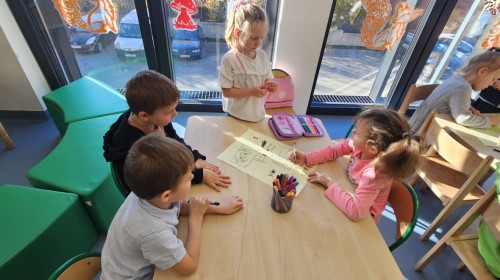 co sprawia mu przyjemność, narysować to oraz wykonać pracę plastyczną z nowo poznaną przyjaciółką.