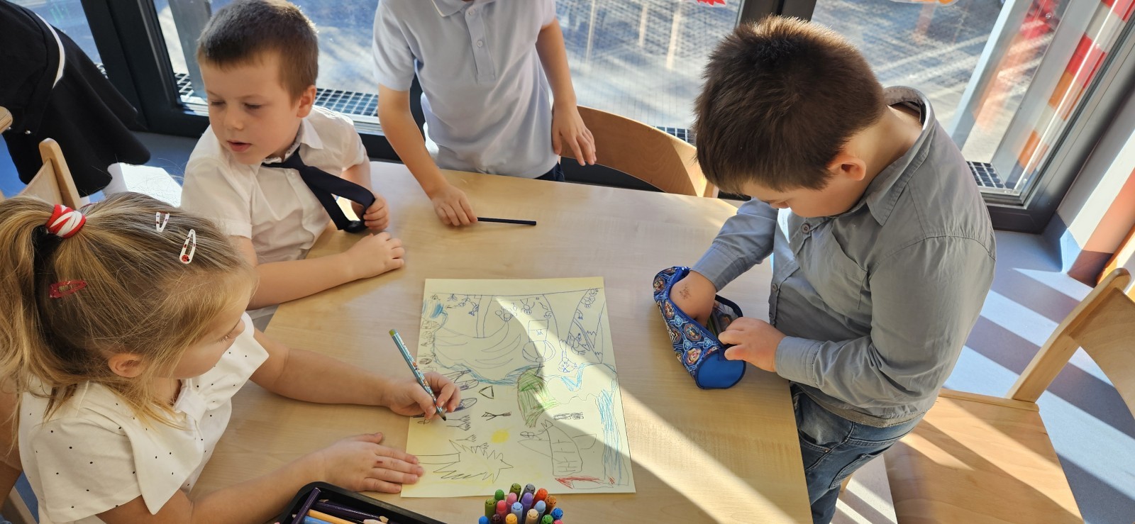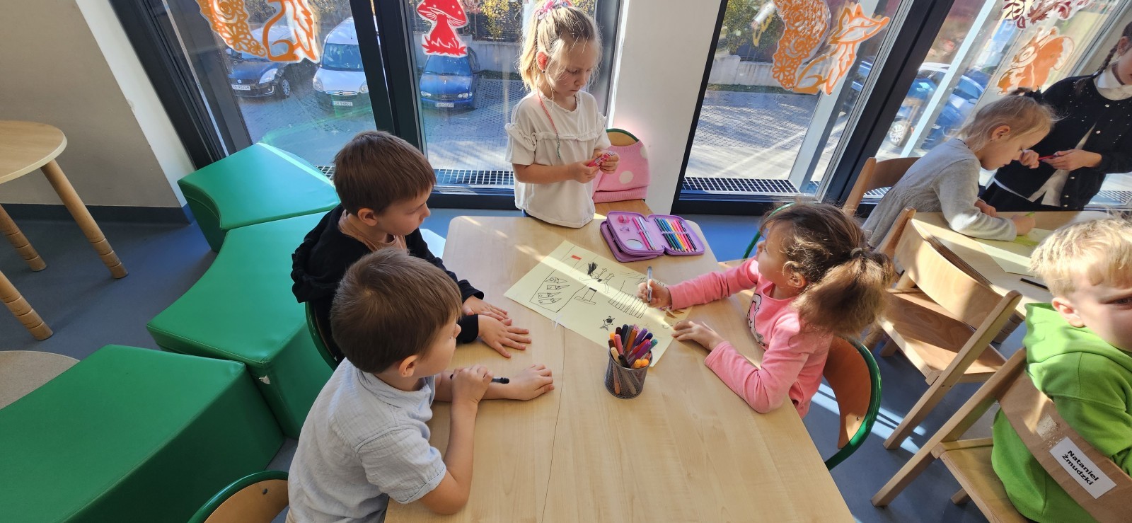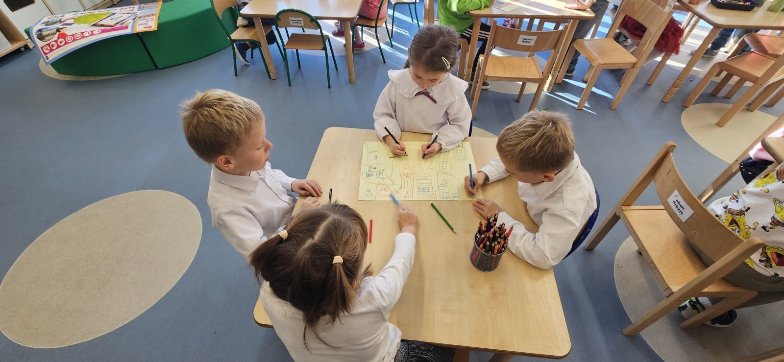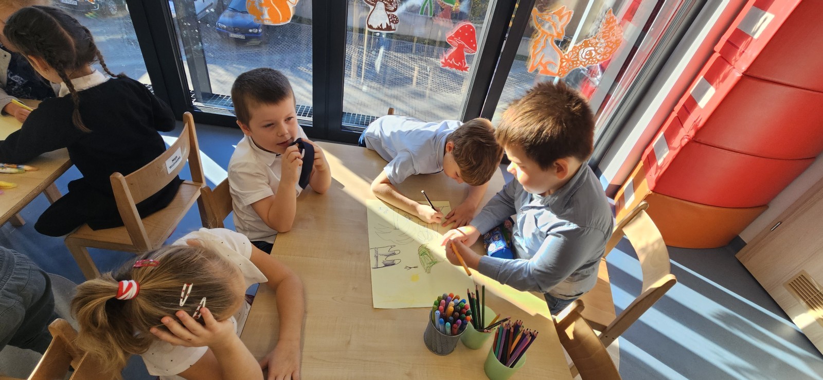 co sprawia mu przyjemność, narysować to oraz wykonać pracę plastyczną z nowo poznaną przyjaciółką.