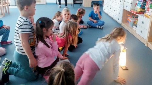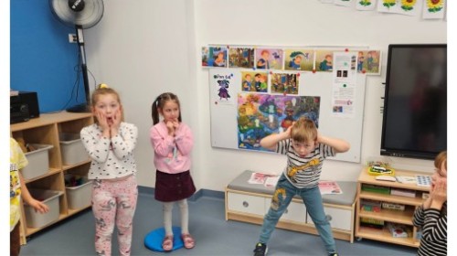 Zajęcia poświęcone były emocji zdziwienia, którą dzieci poznawały dzięki postaci Pana Łał – mieszkańca Wyspy Zdziwienia. Na początku zajęć dzieci wysłuchały bajki, a następnie odpowiadały na pytania do tekstu. Potem uczestniczyły w zabawie ruchowej, która polegała na pokazywaniu zdziwienia za pomocą mimiki i gestów oraz nazywaniu sytuacji, które mogą wywołać zdziwienie. Kolejną aktywnością było ćwiczenie plastyczne. Dzieci kolorowały postać Pana Łał oraz rysowały 3 rzeczy, które wywołują u nich zdziwienie. Na końcu odbyło się podsumowanie zajęć. Sylweta Pana Łał została przyklejona na plakacie projektowym oraz w książeczkach.