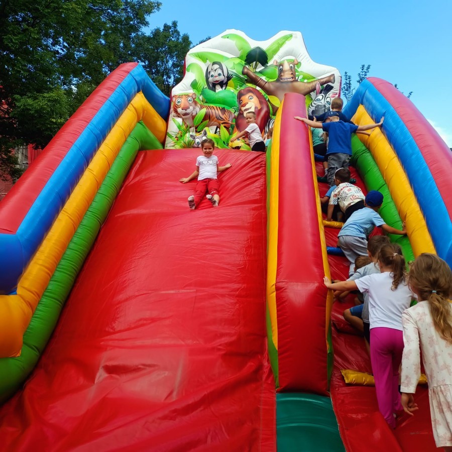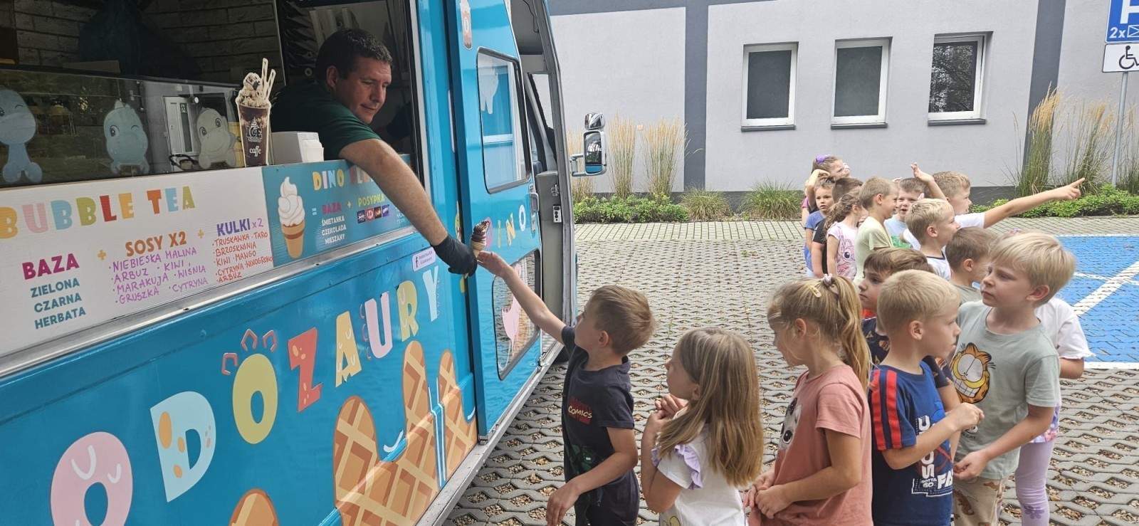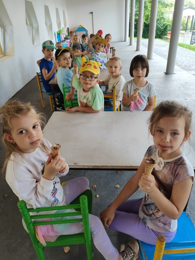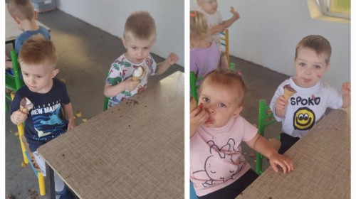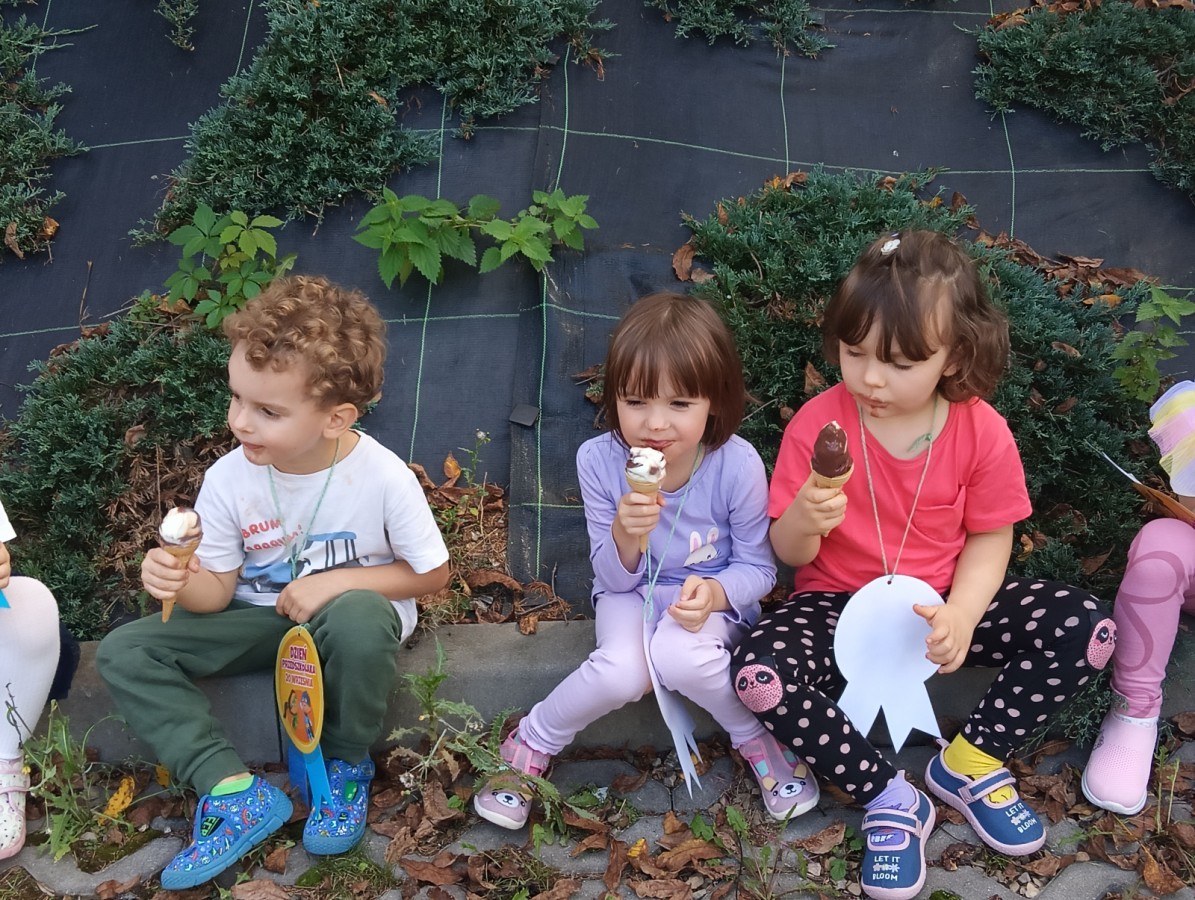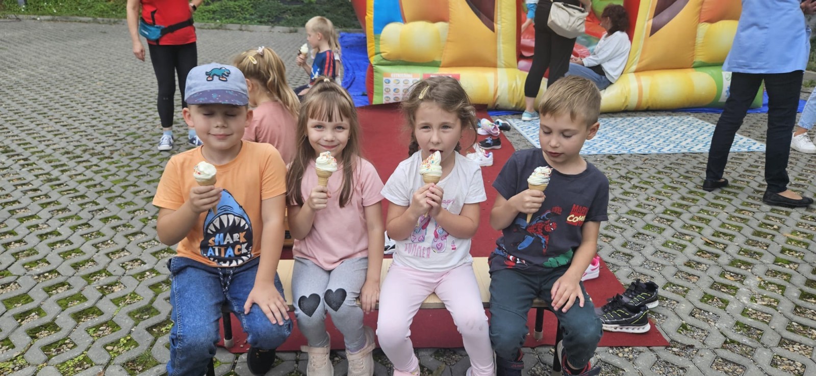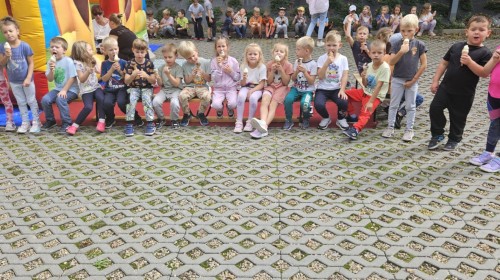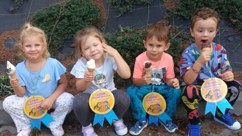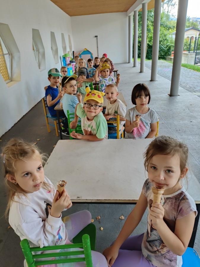 Dzisiejszy dzień dostarczył naszym przedszkolakom mnóstwo radości i niezapomnianych wrażeń. Rozpoczęliśmy od wspólnych zabaw ruchowych i muzycznych, które wprowadziły wszystkich w doskonały nastrój. Następnie przyszedł czas na aktywność na świeżym powietrzu - dzieci z entuzjazmem korzystały z dmuchanej zjeżdżalni i placu zabaw. Na zakończenie czekała na wszystkich słodka niespodzianka - pyszne lody, które były idealnym zwieńczeniem tego pełnego atrakcji dnia.