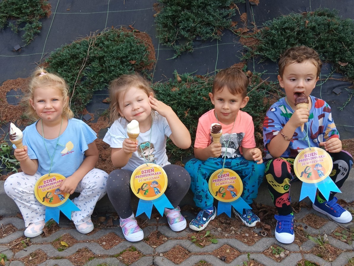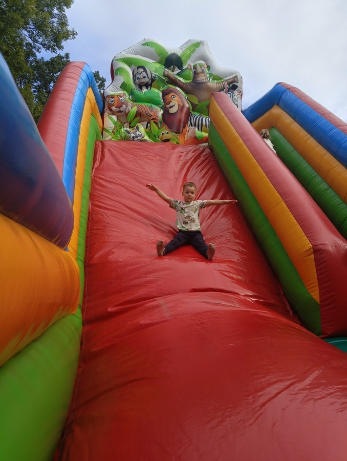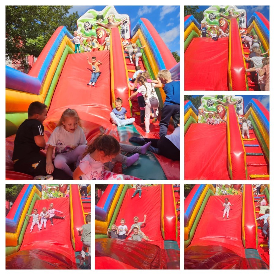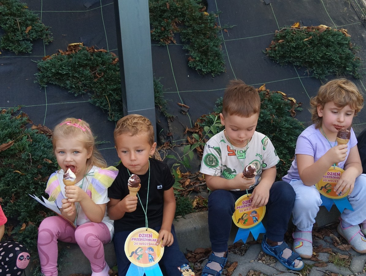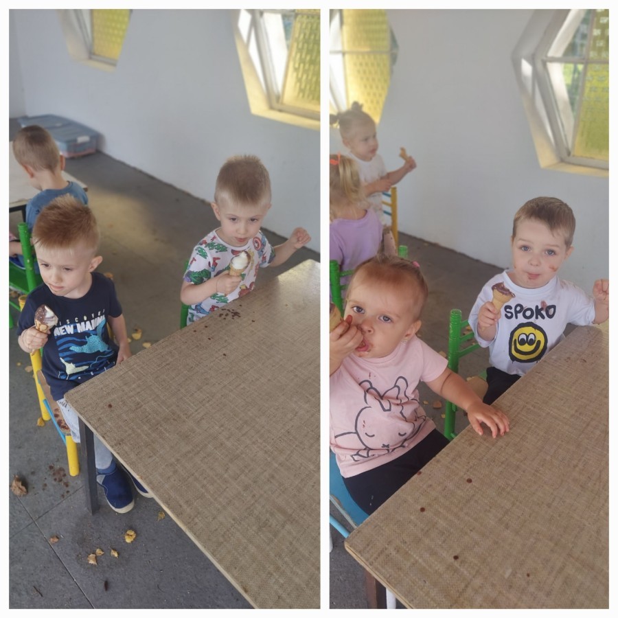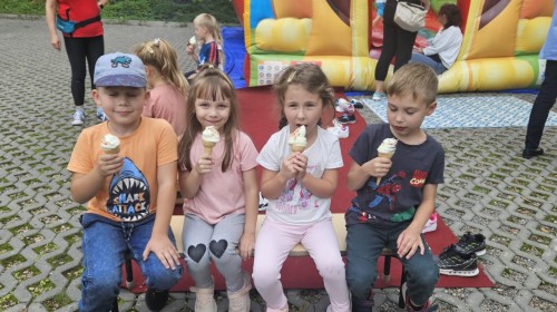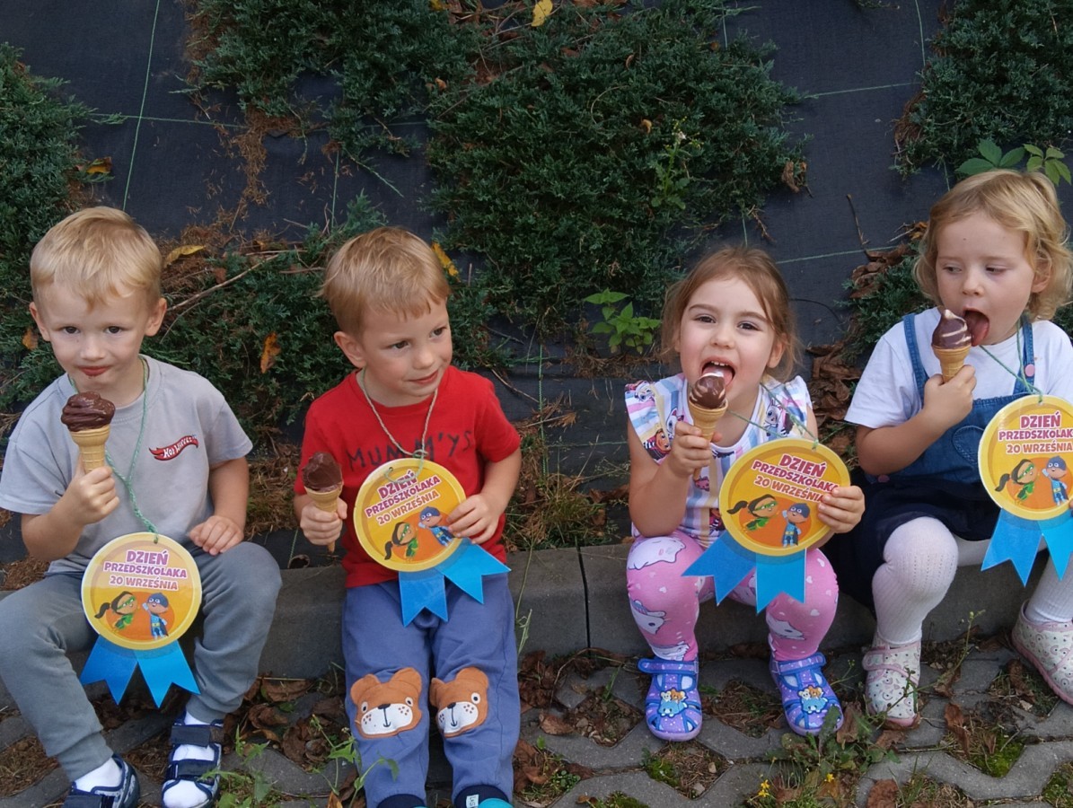 Dzisiejszy dzień dostarczył naszym przedszkolakom mnóstwo radości i niezapomnianych wrażeń. Rozpoczęliśmy od wspólnych zabaw ruchowych i muzycznych, które wprowadziły wszystkich w doskonały nastrój. Następnie przyszedł czas na aktywność na świeżym powietrzu - dzieci z entuzjazmem korzystały z dmuchanej zjeżdżalni i placu zabaw. Na zakończenie czekała na wszystkich słodka niespodzianka - pyszne lody, które były idealnym zwieńczeniem tego pełnego atrakcji dnia.