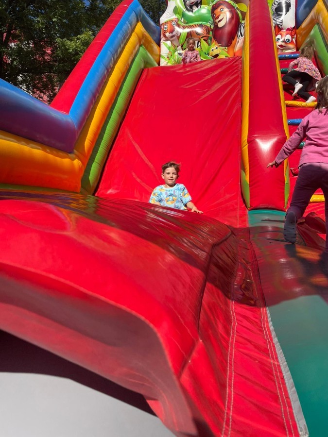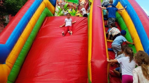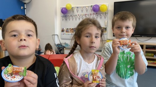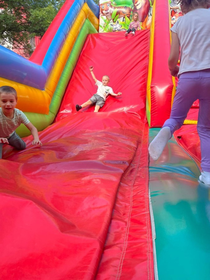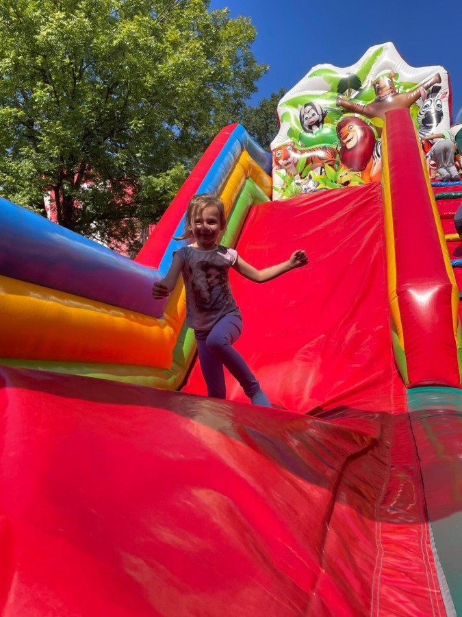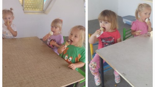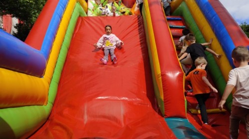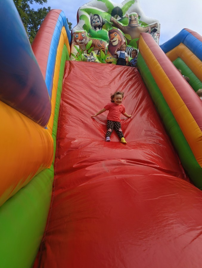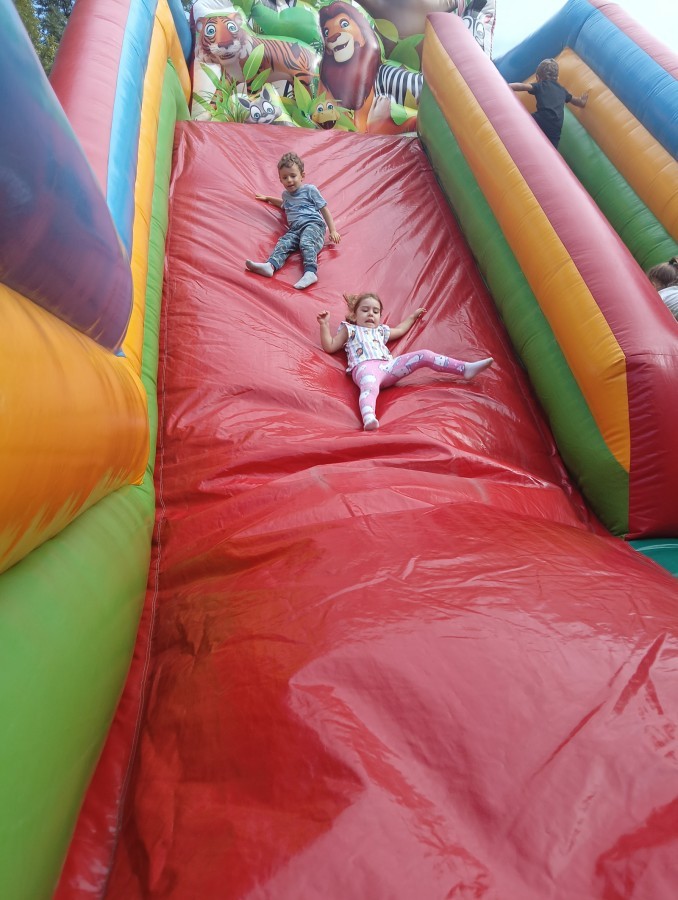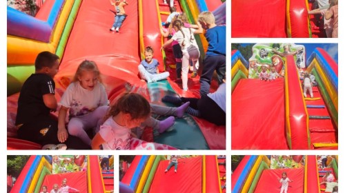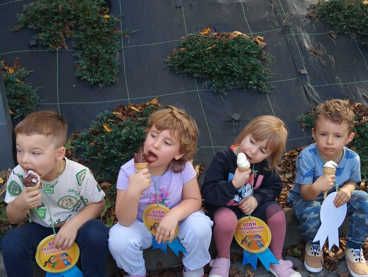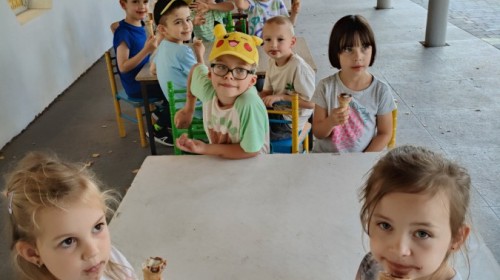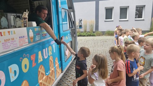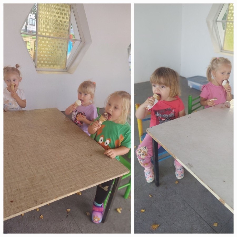 Dzisiejszy dzień dostarczył naszym przedszkolakom mnóstwo radości i niezapomnianych wrażeń. Rozpoczęliśmy od wspólnych zabaw ruchowych i muzycznych, które wprowadziły wszystkich w doskonały nastrój. Następnie przyszedł czas na aktywność na świeżym powietrzu - dzieci z entuzjazmem korzystały z dmuchanej zjeżdżalni i placu zabaw. Na zakończenie czekała na wszystkich słodka niespodzianka - pyszne lody, które były idealnym zwieńczeniem tego pełnego atrakcji dnia.