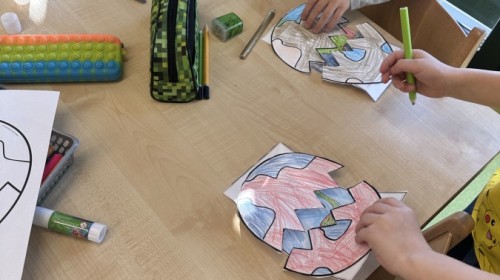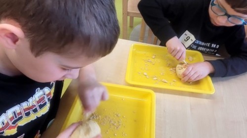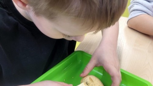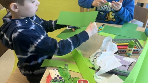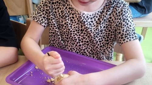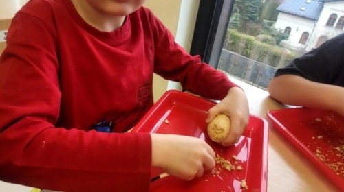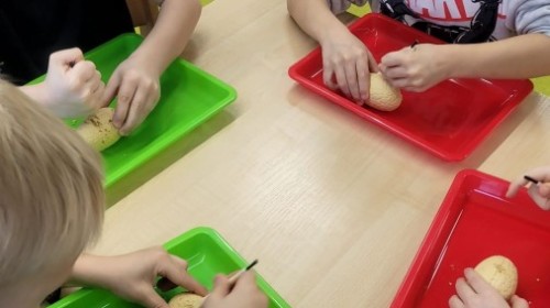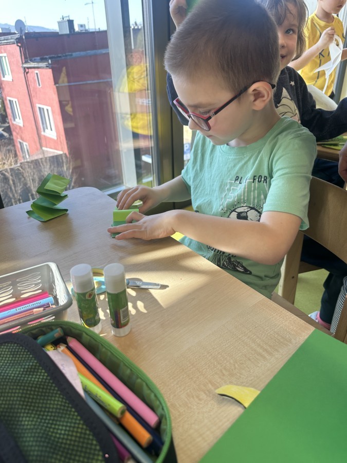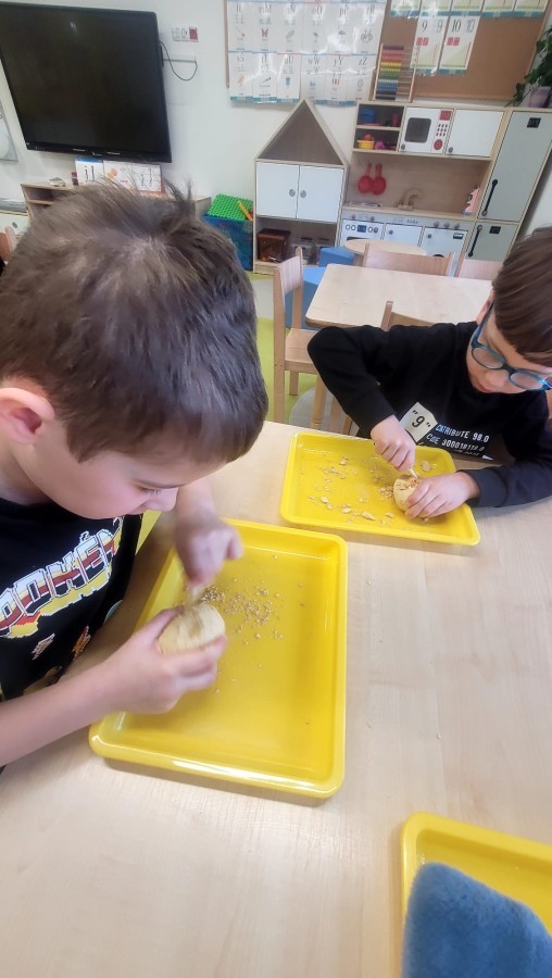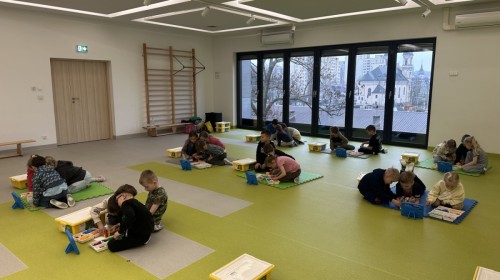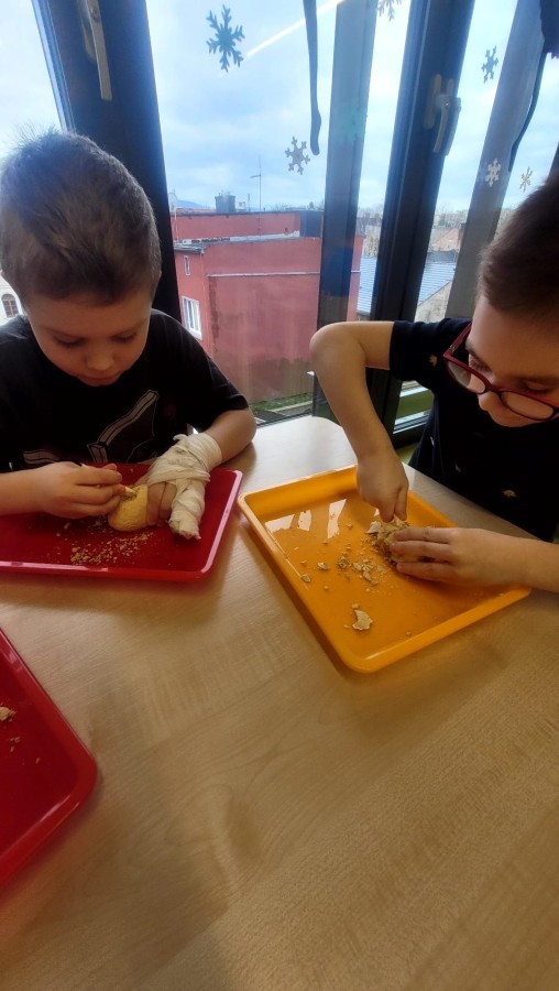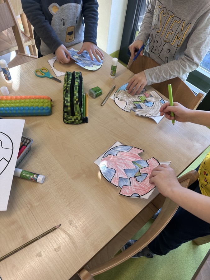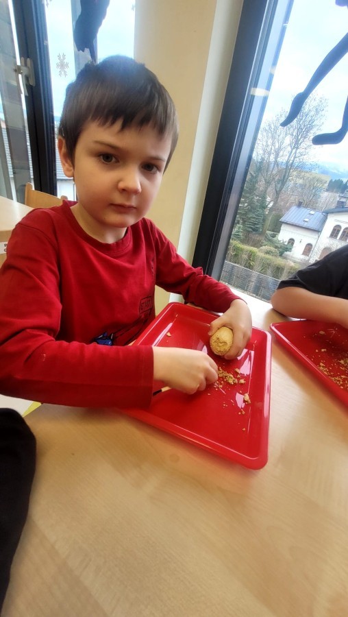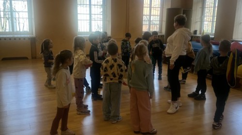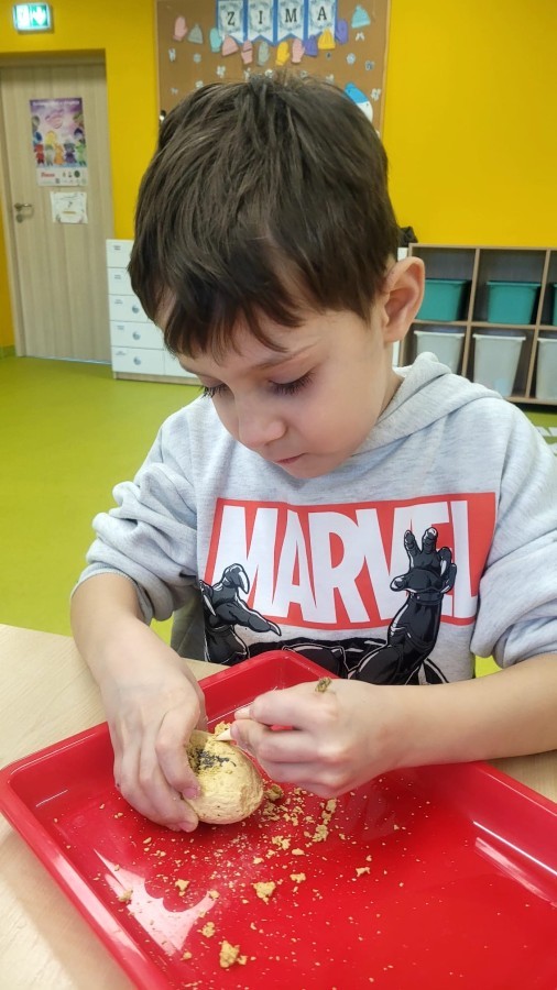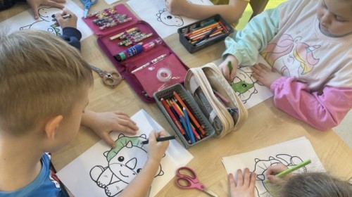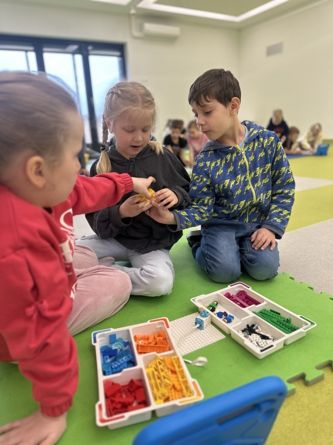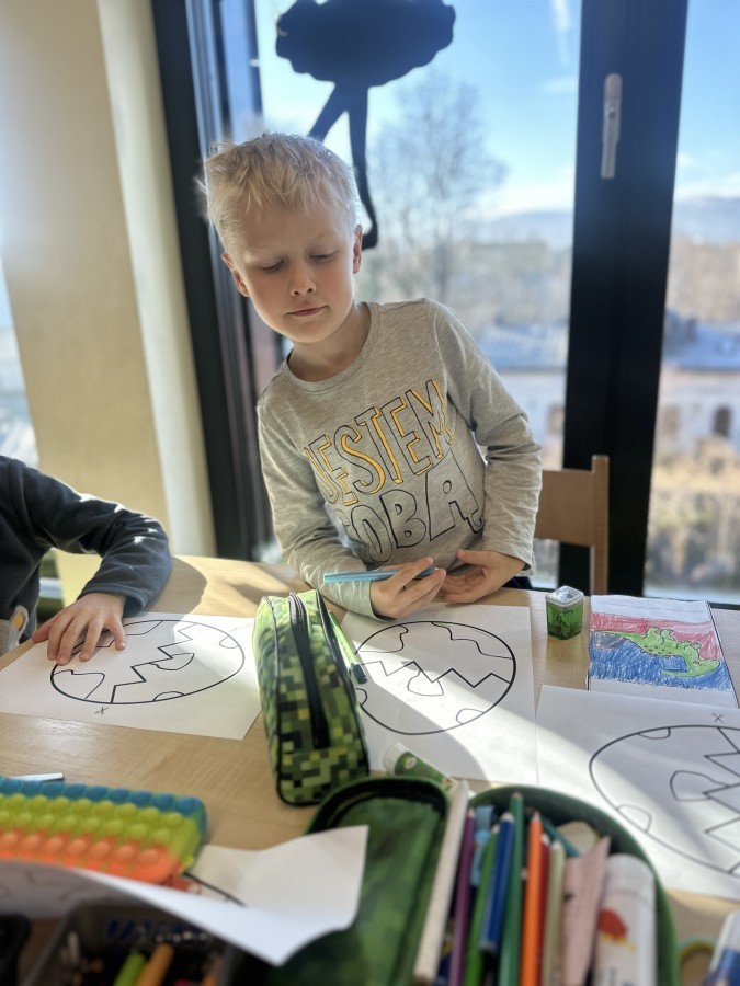 Nie zabrakło kreatywnych aktywności – dzieci wykonywały prace plastyczne, brały udział w zabawach ruchowych oraz małych „wykopaliskach archeologicznych”.