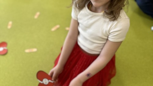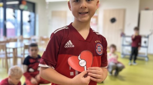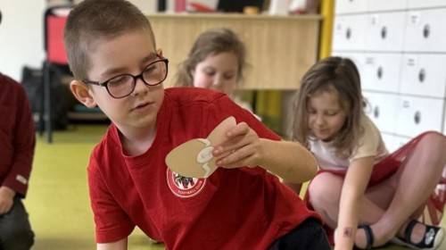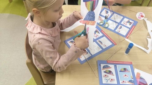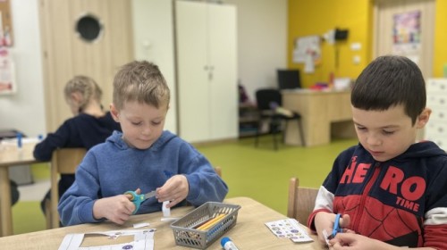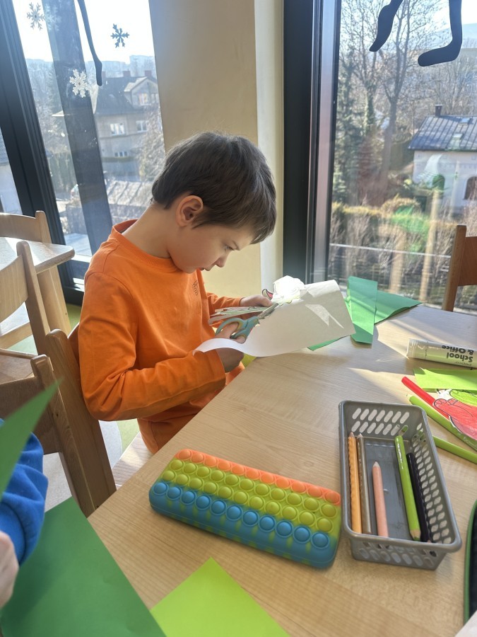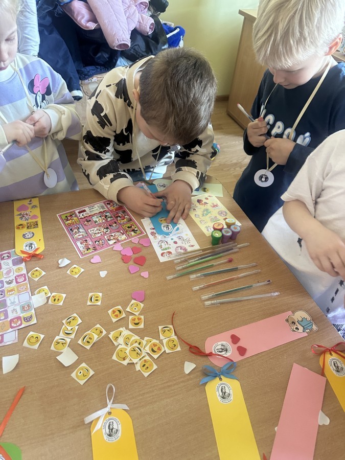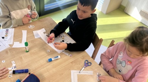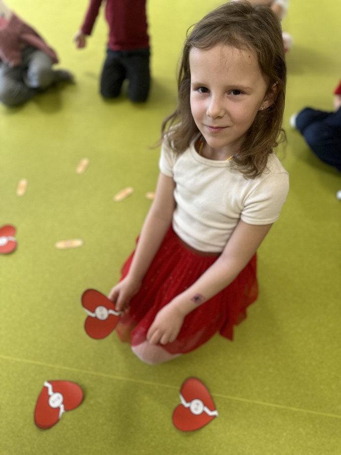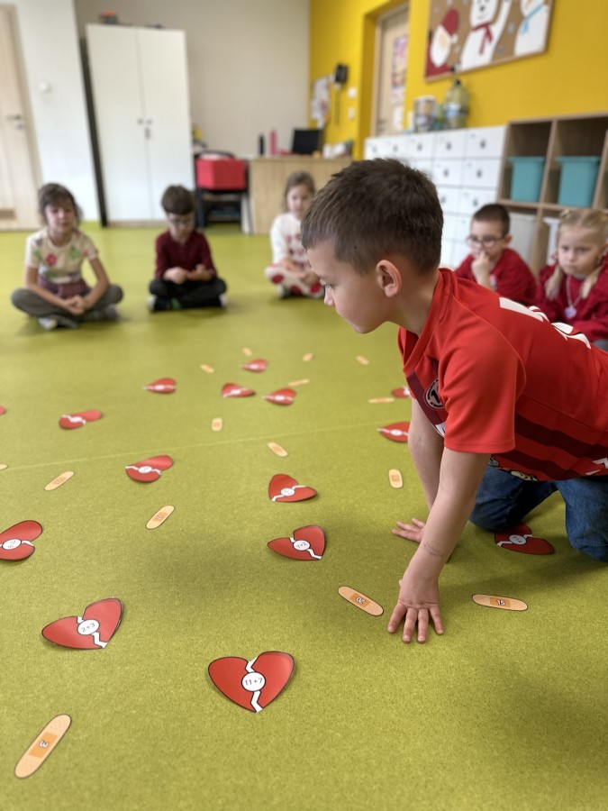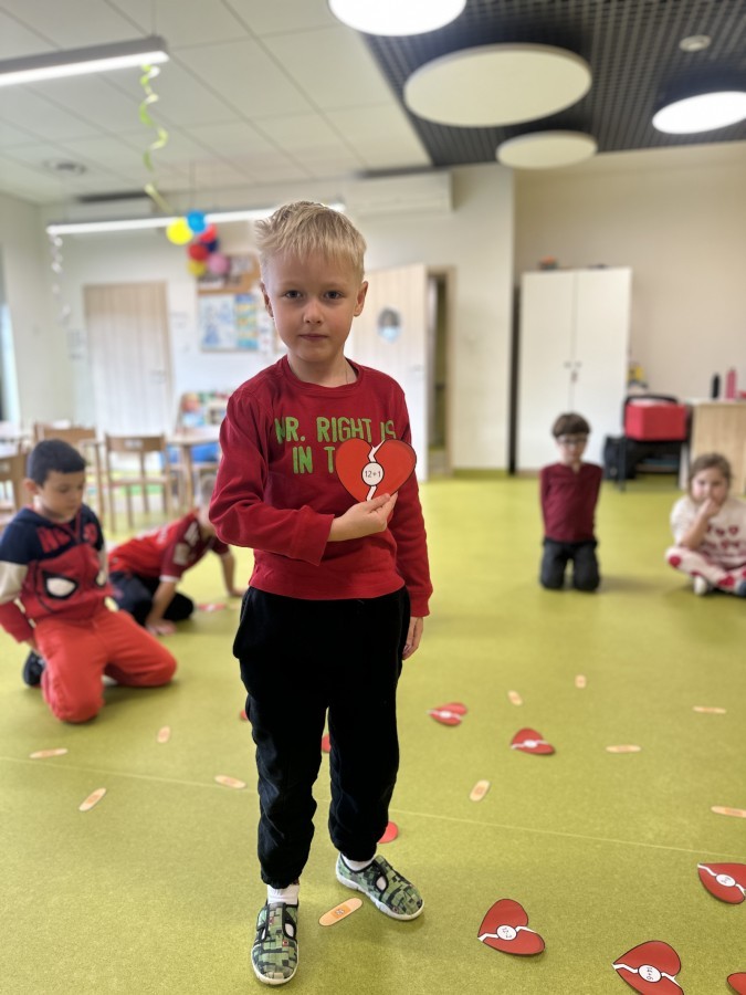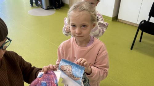 Na zakończenie wykonaliśmy papierowe opaski z serduszkami w kolorze niebieskim, symbolizującym Międzynarodowy Dzień Praw Dziecka.