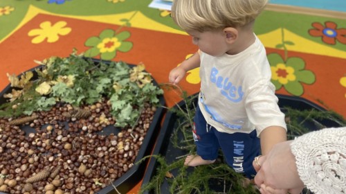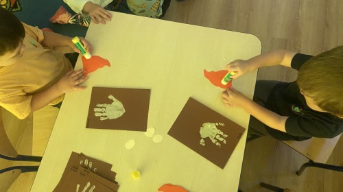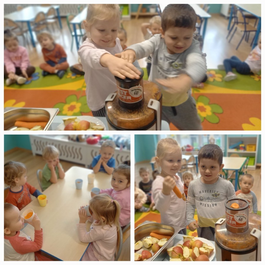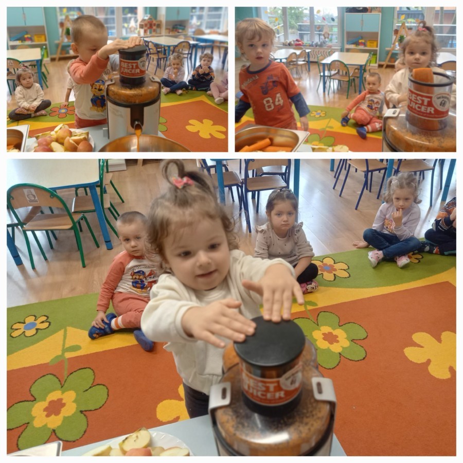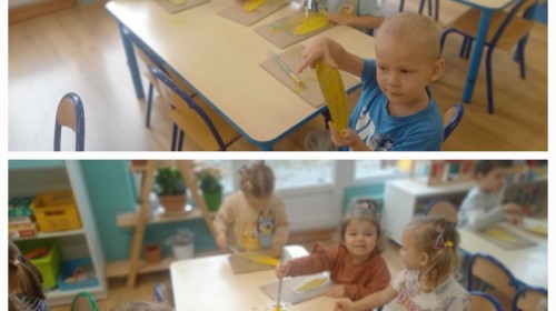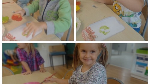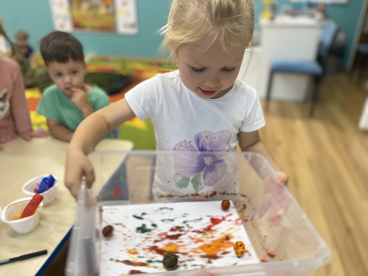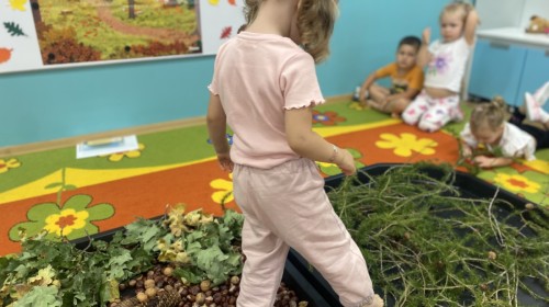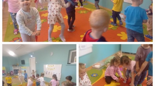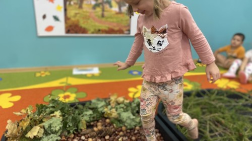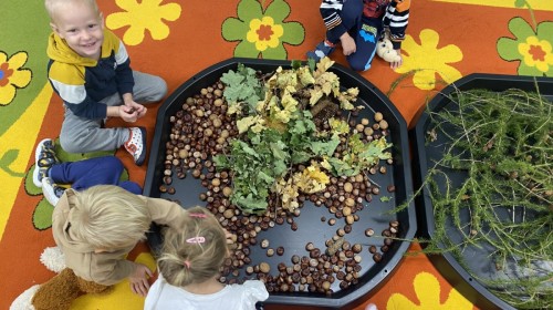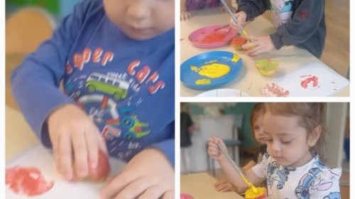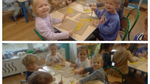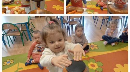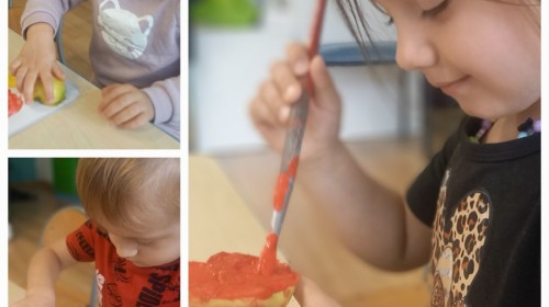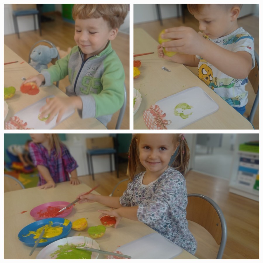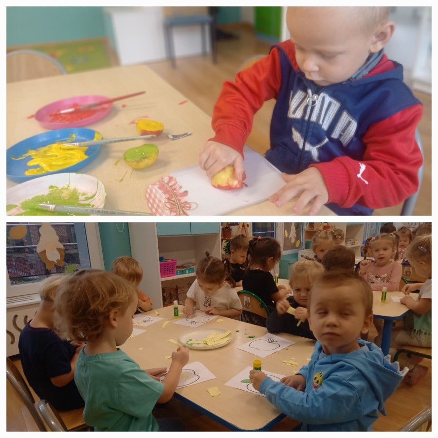 W grupie Krasnali nastała prawdziwa, złota jesień! Już od rana dzieci z radością przywitały wyjątkowego gościa – Panią Jesień, która przyniosła ze sobą kolorowe liście, kasztany i mnóstwo dobrej energii. Krasnale miały okazję przejść się po niezwykłym „dywanie Pani Jesieni” – sensorycznej ścieżce wypełnionej naturalnymi skarbami tej pory roku. To była prawdziwa uczta dla zmysłów! Nie zabrakło też chwili wytchnienia – dzieci z zaciekawieniem wysłuchały bajki o przybyciu Jesieni, a później rozruszały się podczas wesołych zabaw przy jesiennej muzyce. Na zakończenie tego wyjątkowego dnia mali artyści stworzyli piękne, kolorowe prace plastyczne malując... kasztanami!