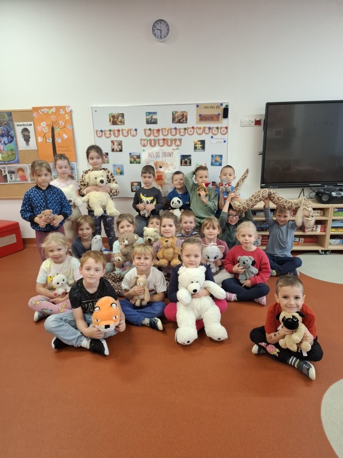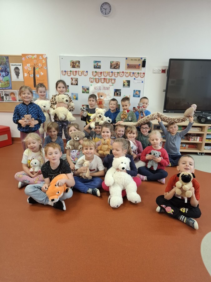 Międzynarodowy Dzień Pluszowego Misia to jedno z najbardziej uwielbianych przez dzieci świąt. Tego dnia dzieci przyszły do przedszkola w towarzystwie swoich ukochanych pluszowych maskotek, dzięki czemu w sali zrobiło się jeszcze bardziej kolorowo i radośnie. Dzieci wysłuchały opowiadania o doktorze niedźwiedziu, które wprowadziło je w misiowy świat pełen dobroci. Wraz ze swoimi zabawkami brały udział w wesołych zabawach muzycznych i ruchowych. Dzieci wykonały też kreatywne misiowe prace plastyczne, wykazując się ogromną wyobraźnią oraz twórczym zapałem.