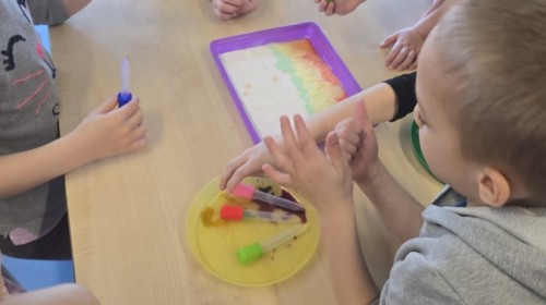 Dzień Kropki grupa Jagódek świętowała bardzo różnorodnie - wysłuchaliśmy opowieści o małej Vashti, wykonaliśmy kropkowaną pracę plastyczną o ruchu drogowym oraz przygotowaliśmy groszkowe ciasteczka z czekoladowymi kropkami. Było kropkowanie, kolorowo i smakowicie.