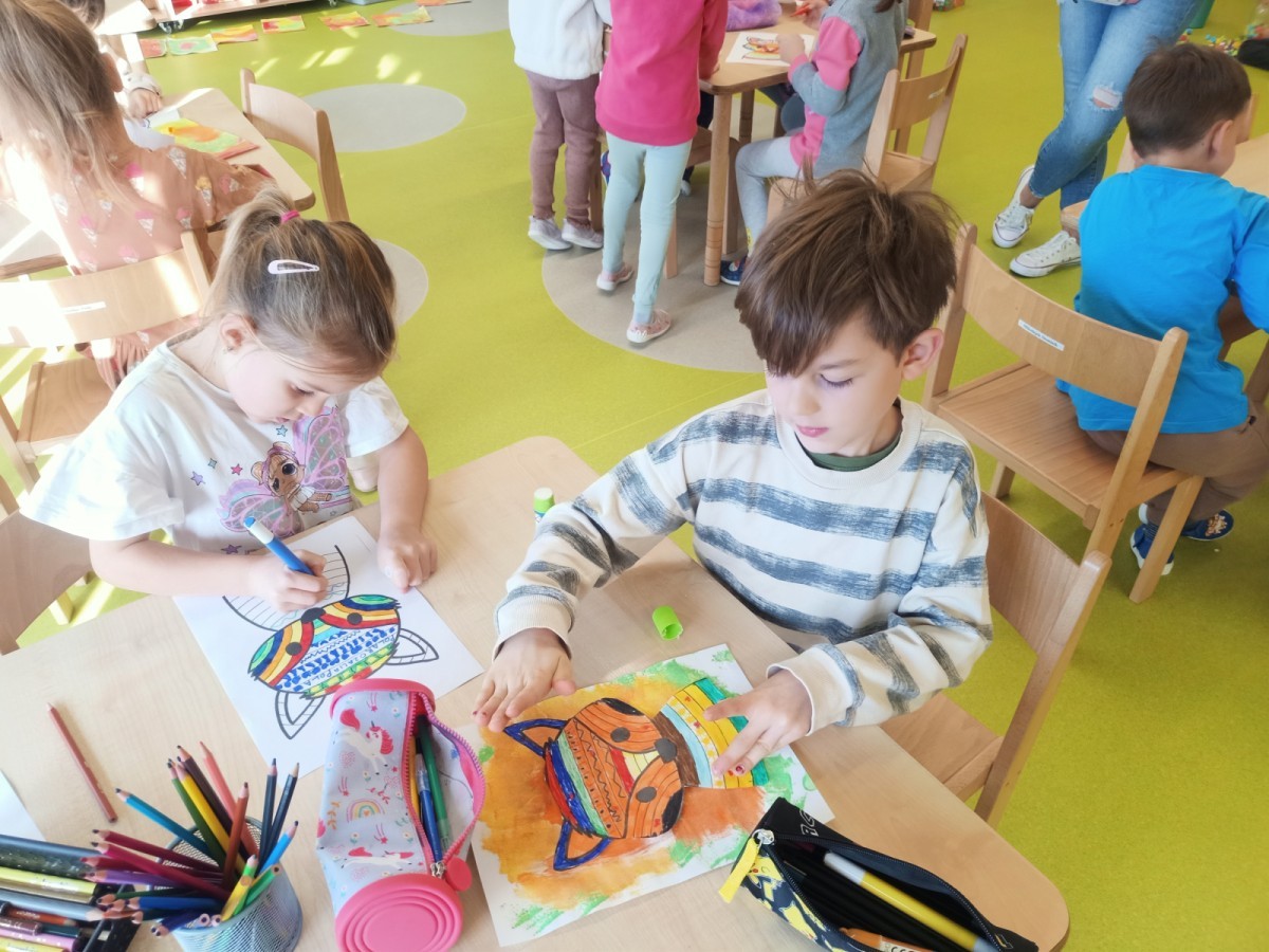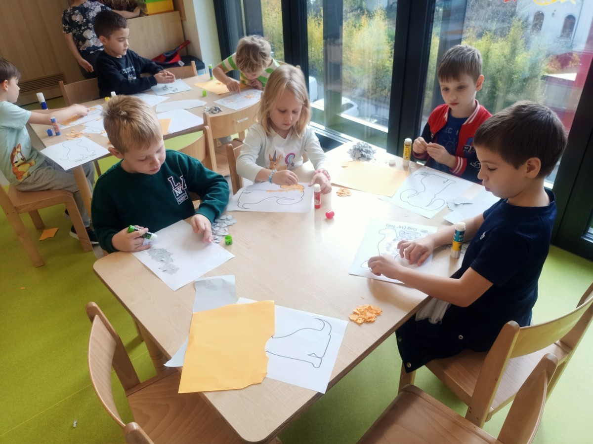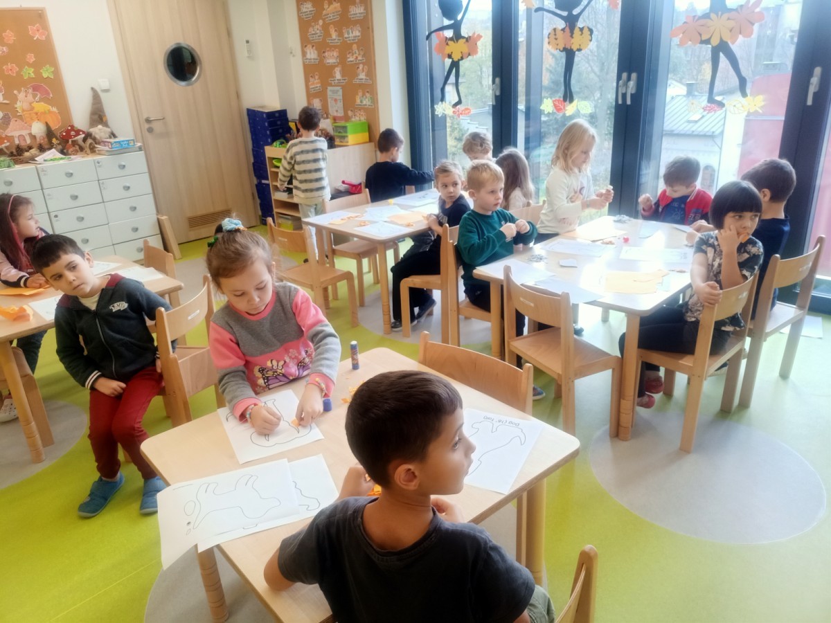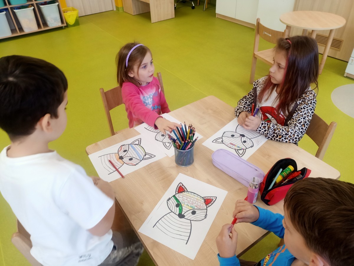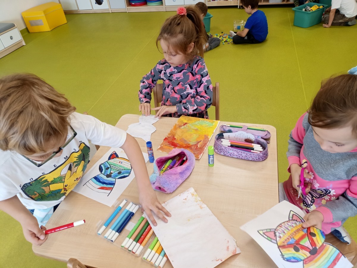 W piątek 14 listopada dzieci z zaangażowaniem tworzyły kolorowe liski, wykorzystując do tego kredki oraz flamastry. Podczas pracy dzieci rozwijały motorykę małą — wycinając i kolorując pobudzały swoją wyobraźnię, komponując własne, niepowtarzalne wersje liska. Wspólna aktywność sprzyjała również koncentracji i twórczej współpracy.