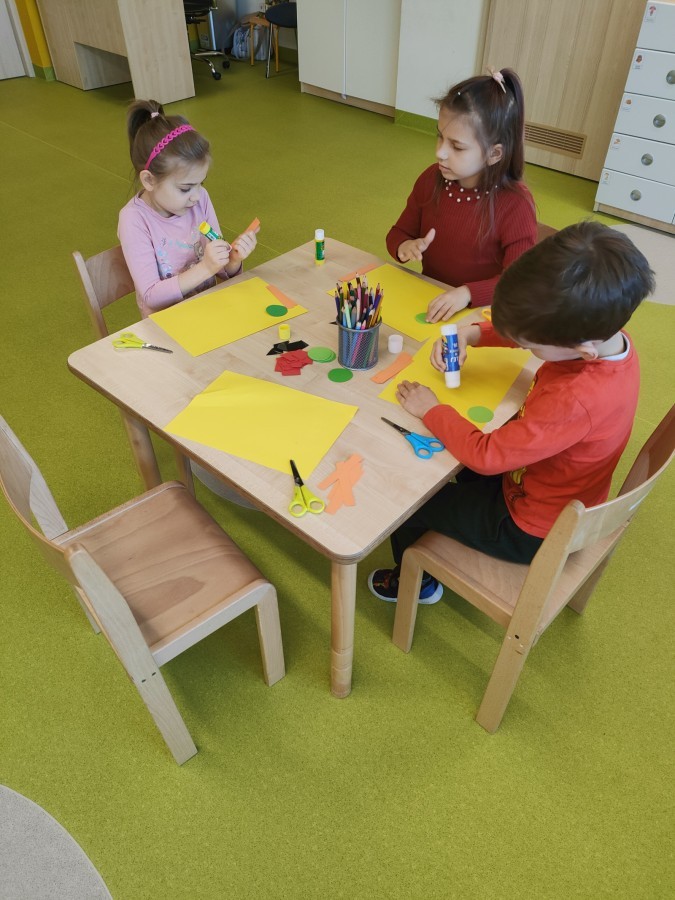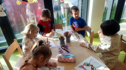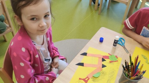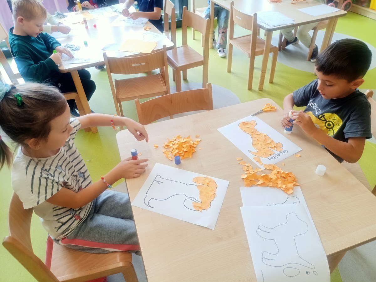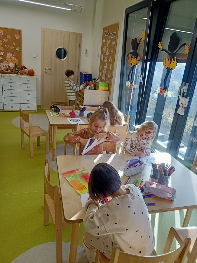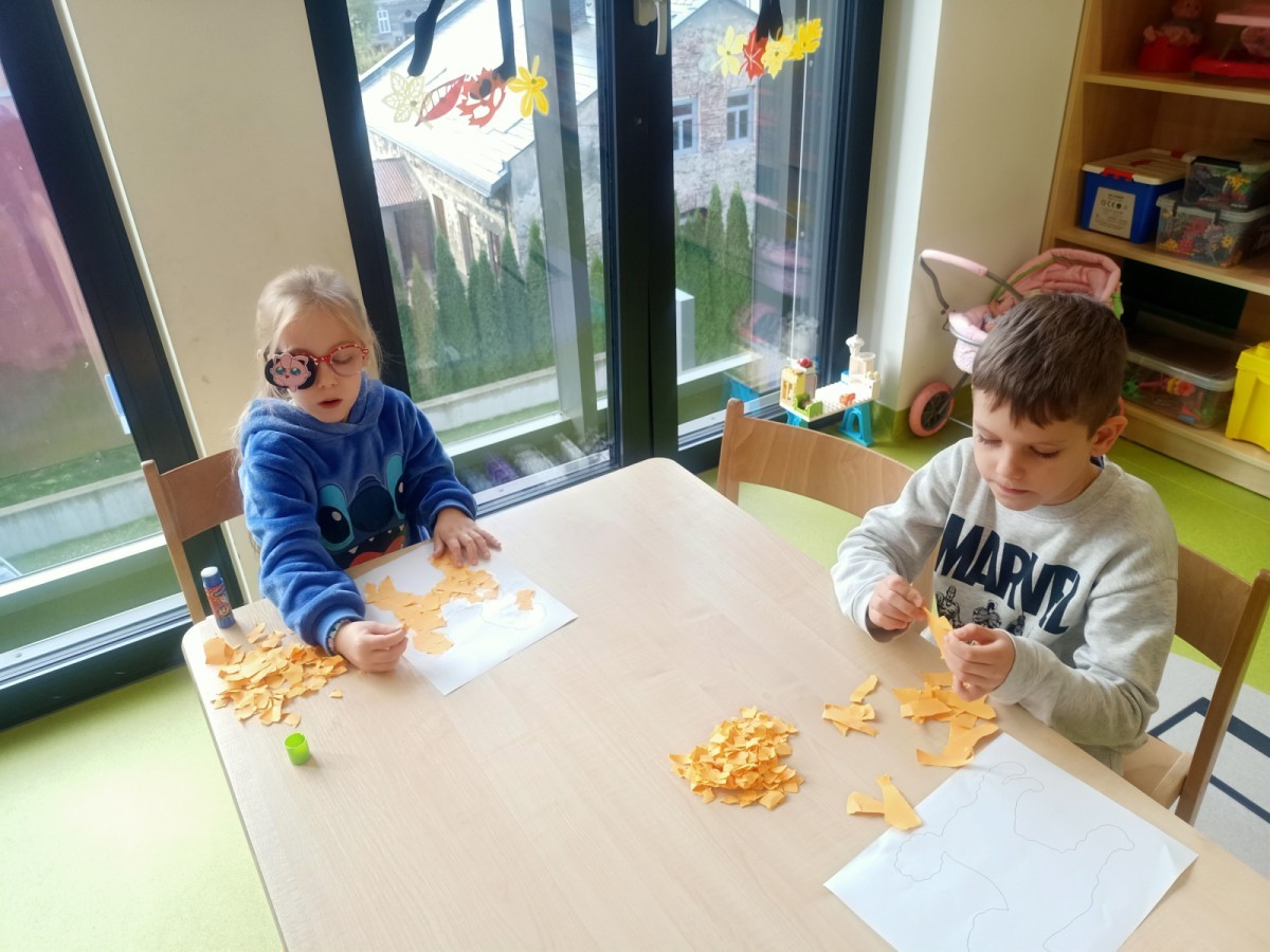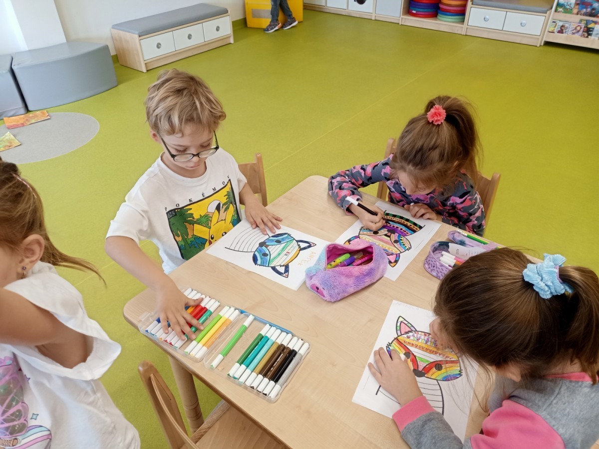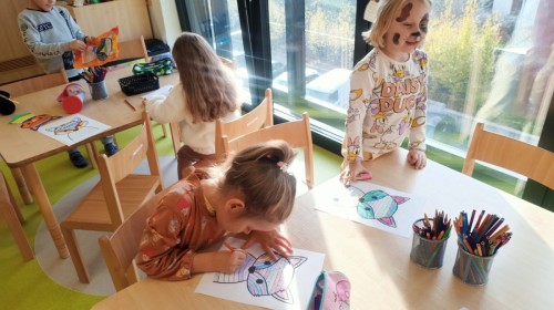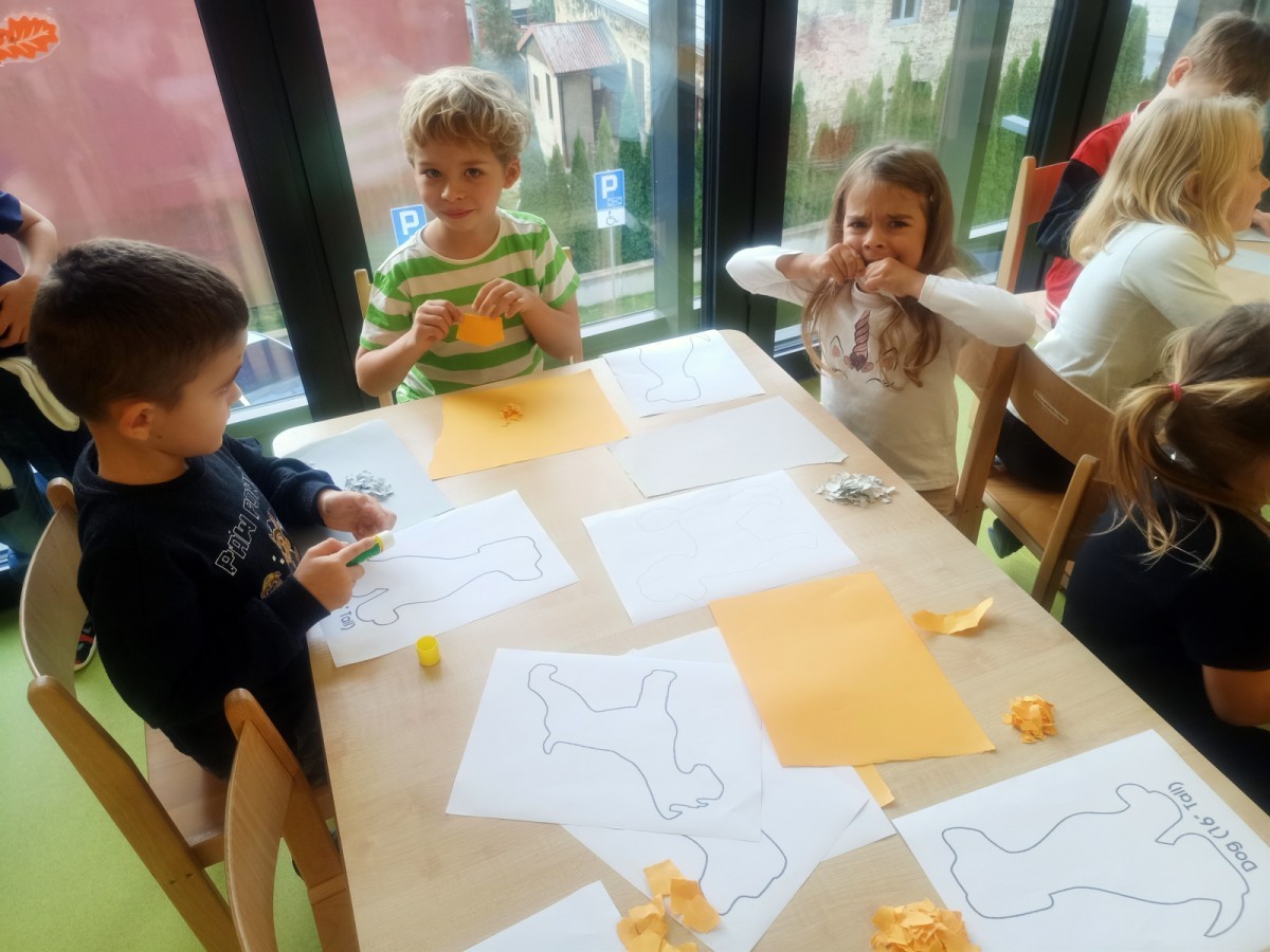 W piątek 14 listopada dzieci z zaangażowaniem tworzyły kolorowe liski, wykorzystując do tego kredki oraz flamastry. Podczas pracy dzieci rozwijały motorykę małą — wycinając i kolorując pobudzały swoją wyobraźnię, komponując własne, niepowtarzalne wersje liska. Wspólna aktywność sprzyjała również koncentracji i twórczej współpracy.