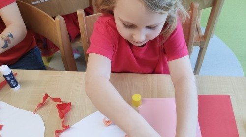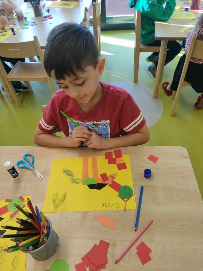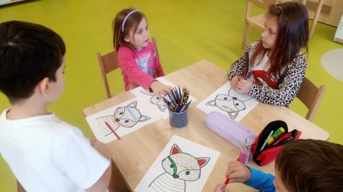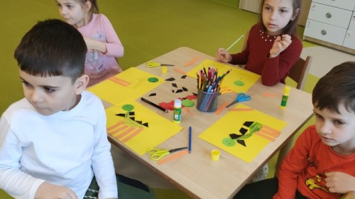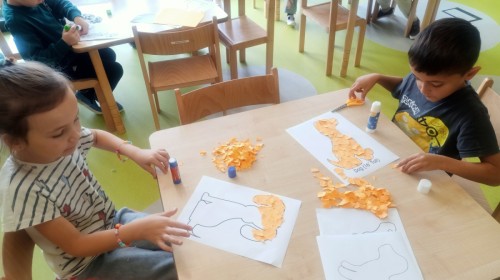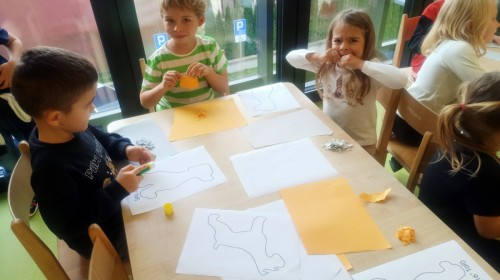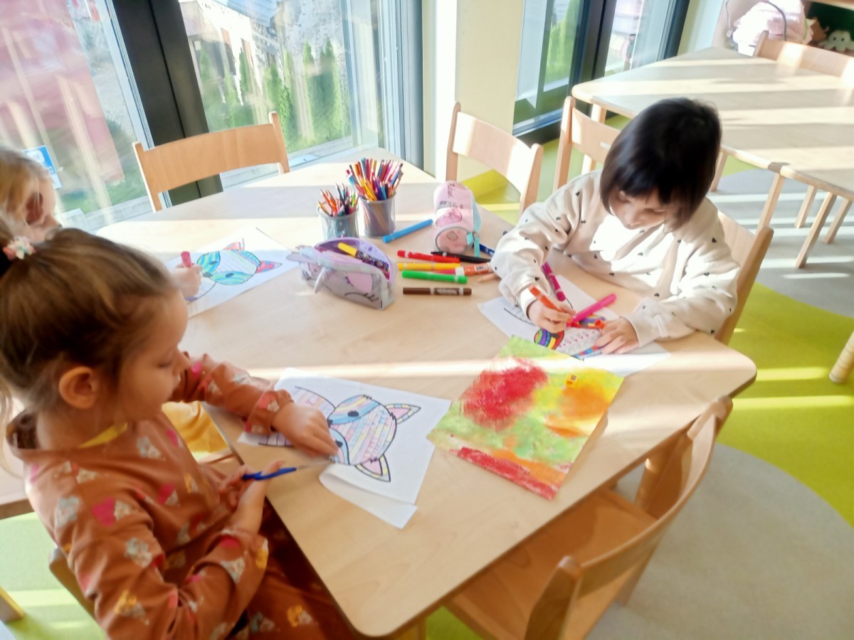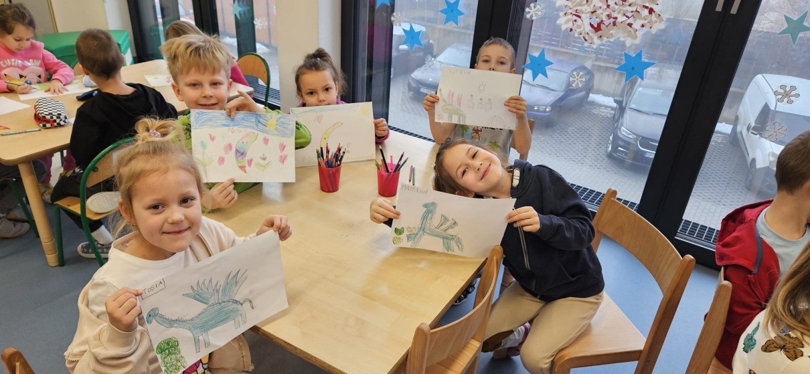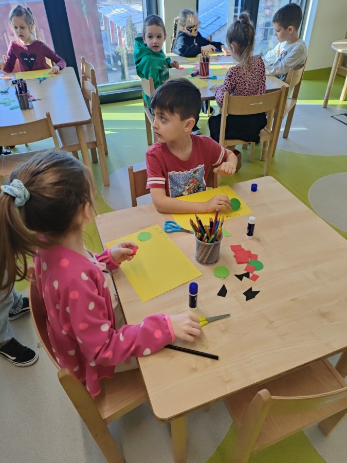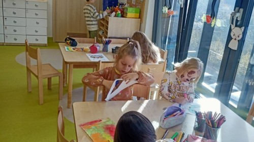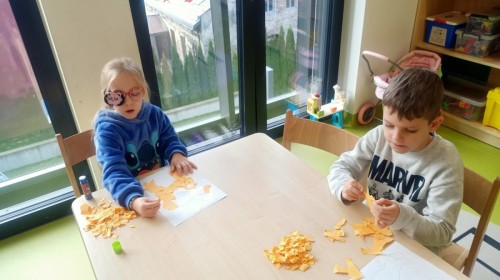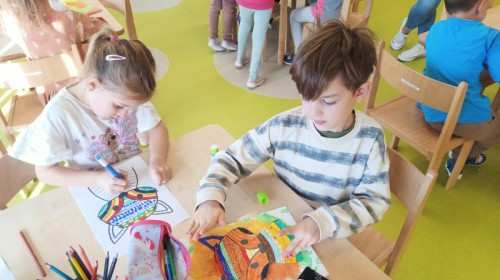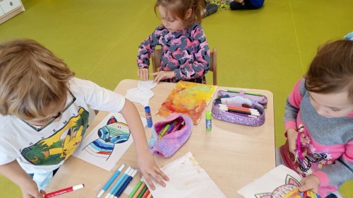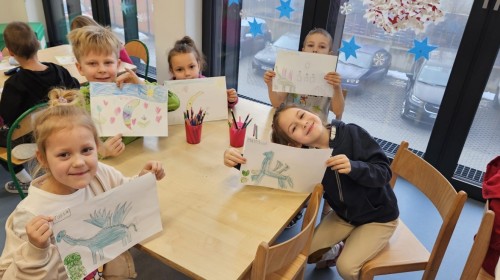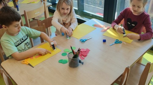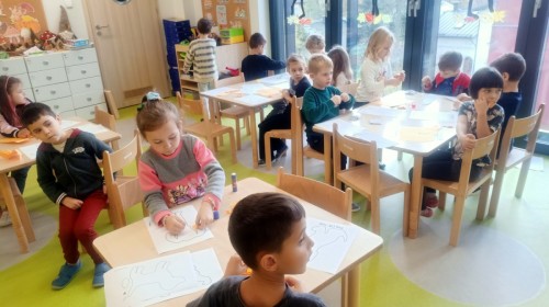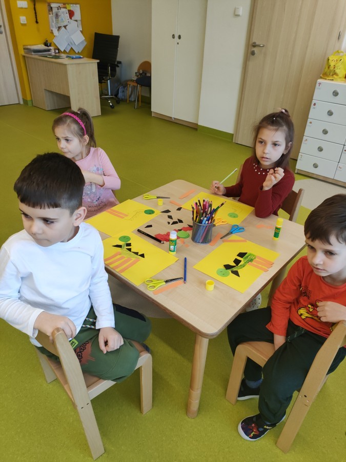 W piątek 14 listopada dzieci z zaangażowaniem tworzyły kolorowe liski, wykorzystując do tego kredki oraz flamastry. Podczas pracy dzieci rozwijały motorykę małą — wycinając i kolorując pobudzały swoją wyobraźnię, komponując własne, niepowtarzalne wersje liska. Wspólna aktywność sprzyjała również koncentracji i twórczej współpracy.