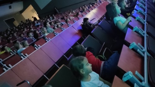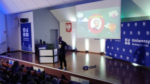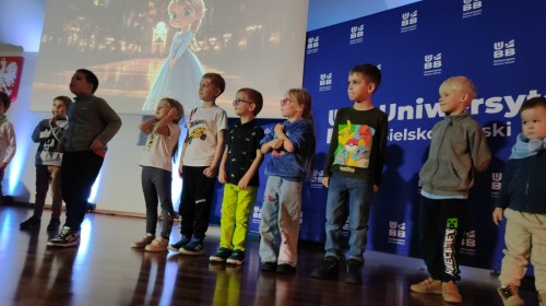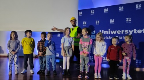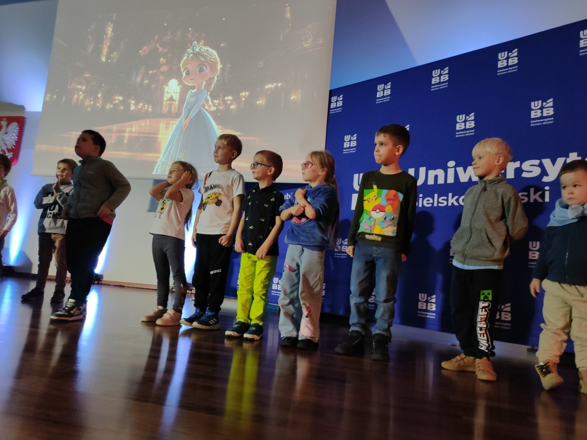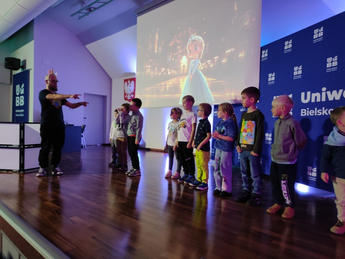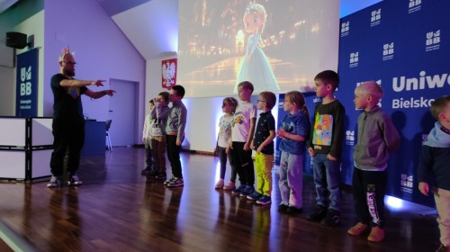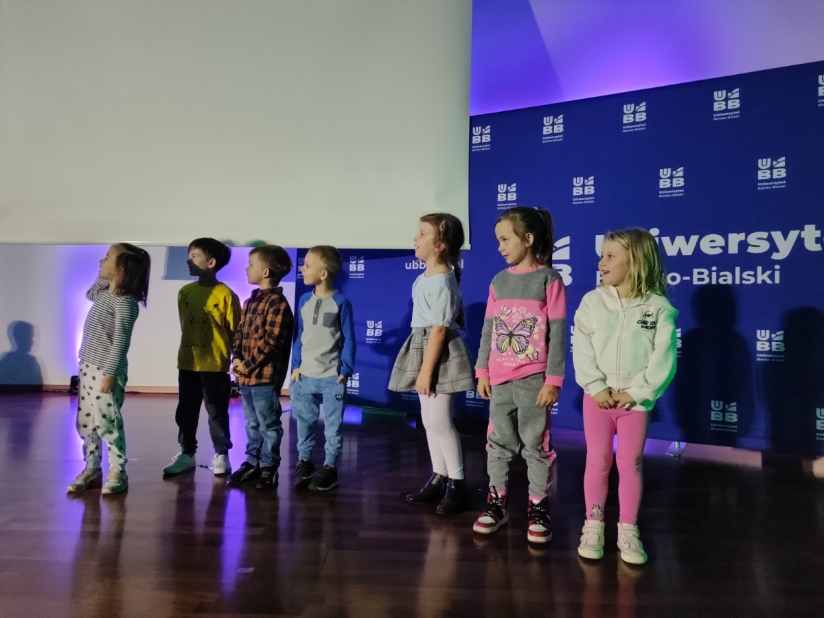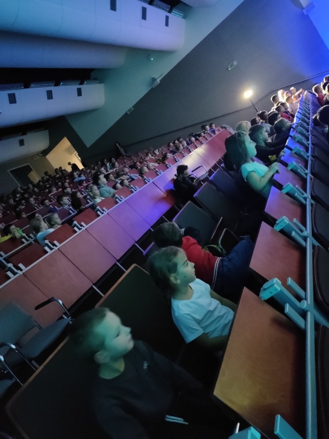 Dzieci z grupy „Motylki” wybrały się na wyjątkowy koncert Pana Miłosza, który odbył się w Auli Maximum Uniwersytetu Bielsko-Bialskiego. Już sama podróż była dla przedszkolaków niezwykłym wydarzeniem — dzieci pojechały autobusem, a dla niektórych był to pierwszy taki przejazd w życiu!