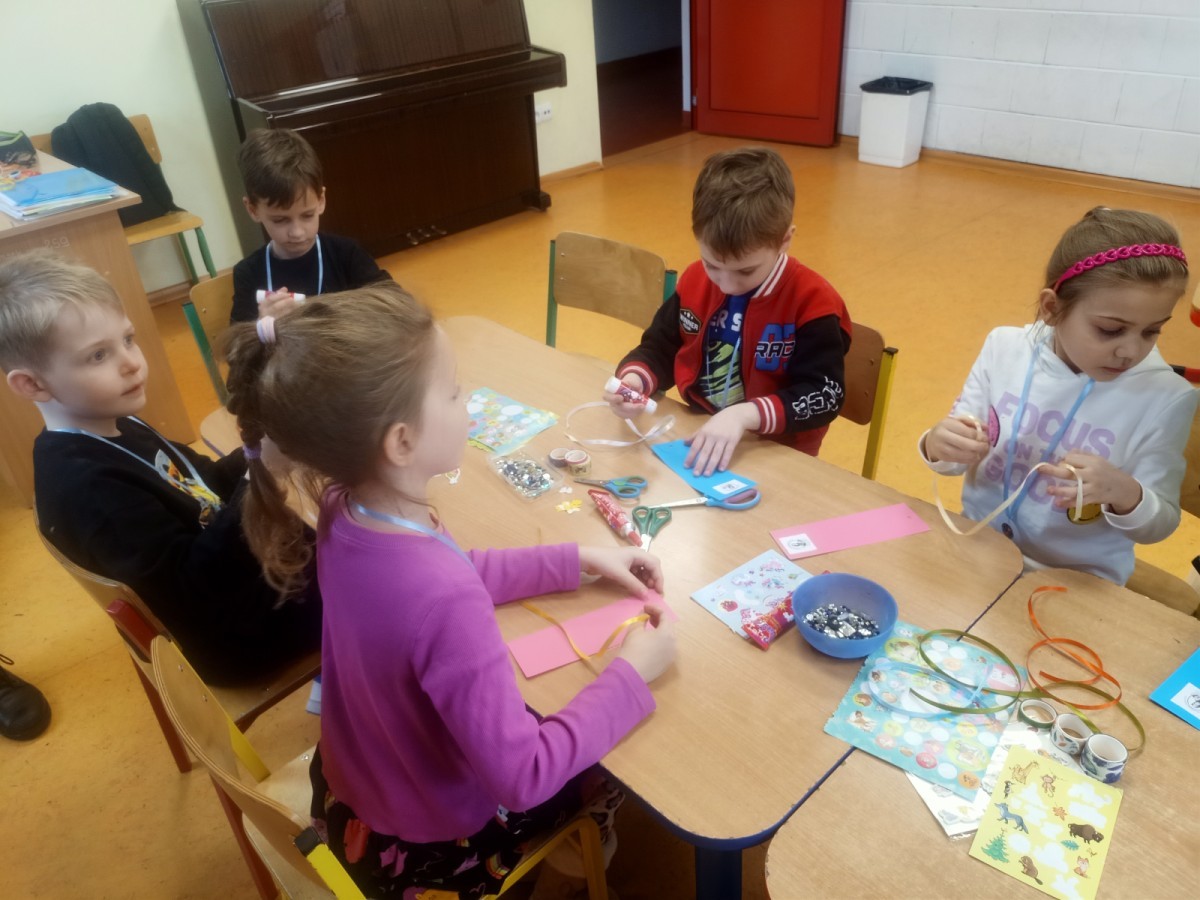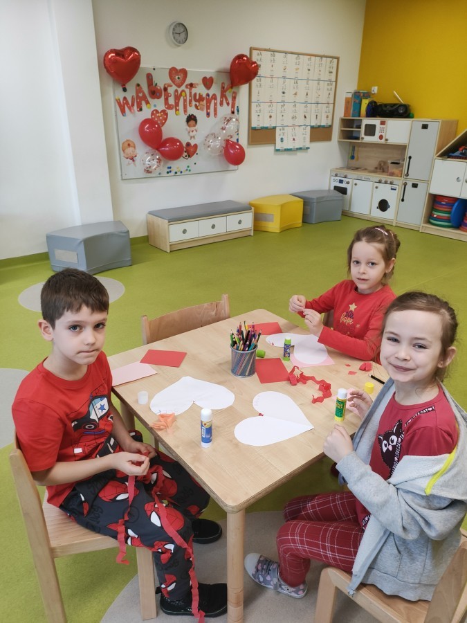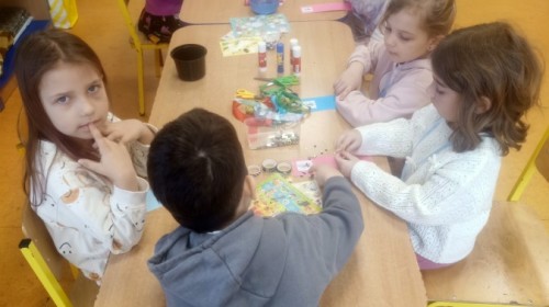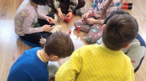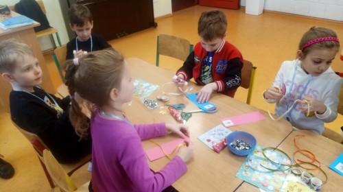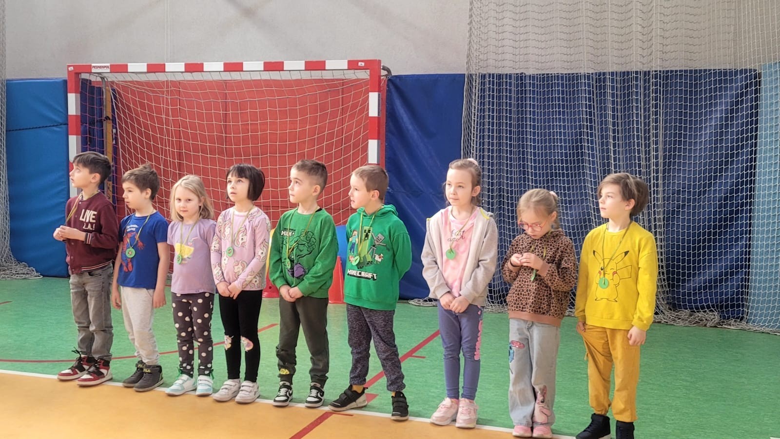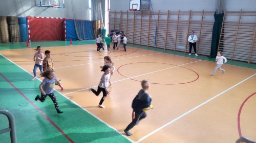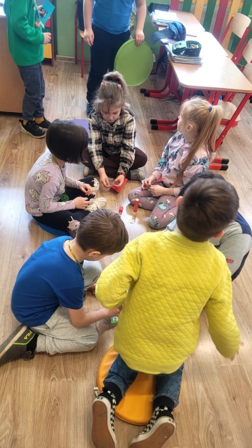 W jednej z klas dzieci wykonały piękne, kolorowe zakładki do książek, rozwijając swoją kreatywność i zdolności manualne. Następnie udały się na salę gimnastyczną, gdzie z dużym zaangażowaniem uczestniczyły w różnych ćwiczeniach ruchowych i zabawach sportowych.