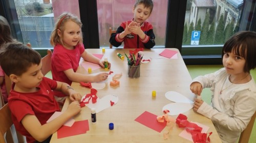 W tym szczególnym dniu dzieci z radością opowiadały o swoich czworonożnych przyjaciołach, oglądały zdjęcia piesków i uczestniczyły w ciekawych zabawach tematycznych. Przedszkolaki dowiedziały się, jak należy dbać o zwierzęta i dlaczego warto adoptować psy ze schroniska. Na zakończenie wykonały piękne prace plastyczne przedstawiające wesołe kundelki.