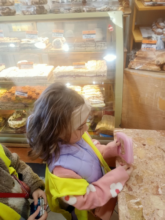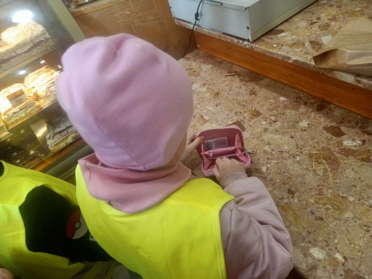 Najwięcej radości sprawił moment wyboru i zakupu słodkości. Była to doskonała okazja do ćwiczenia umiejętności przeliczania pieniędzy oraz samodzielnego dokonywania prostych zakupów. Dzieci z dużym zaangażowaniem liczyły monety i sprawdzały, czy mają odpowiednią kwotę na wybrane smakołyki.