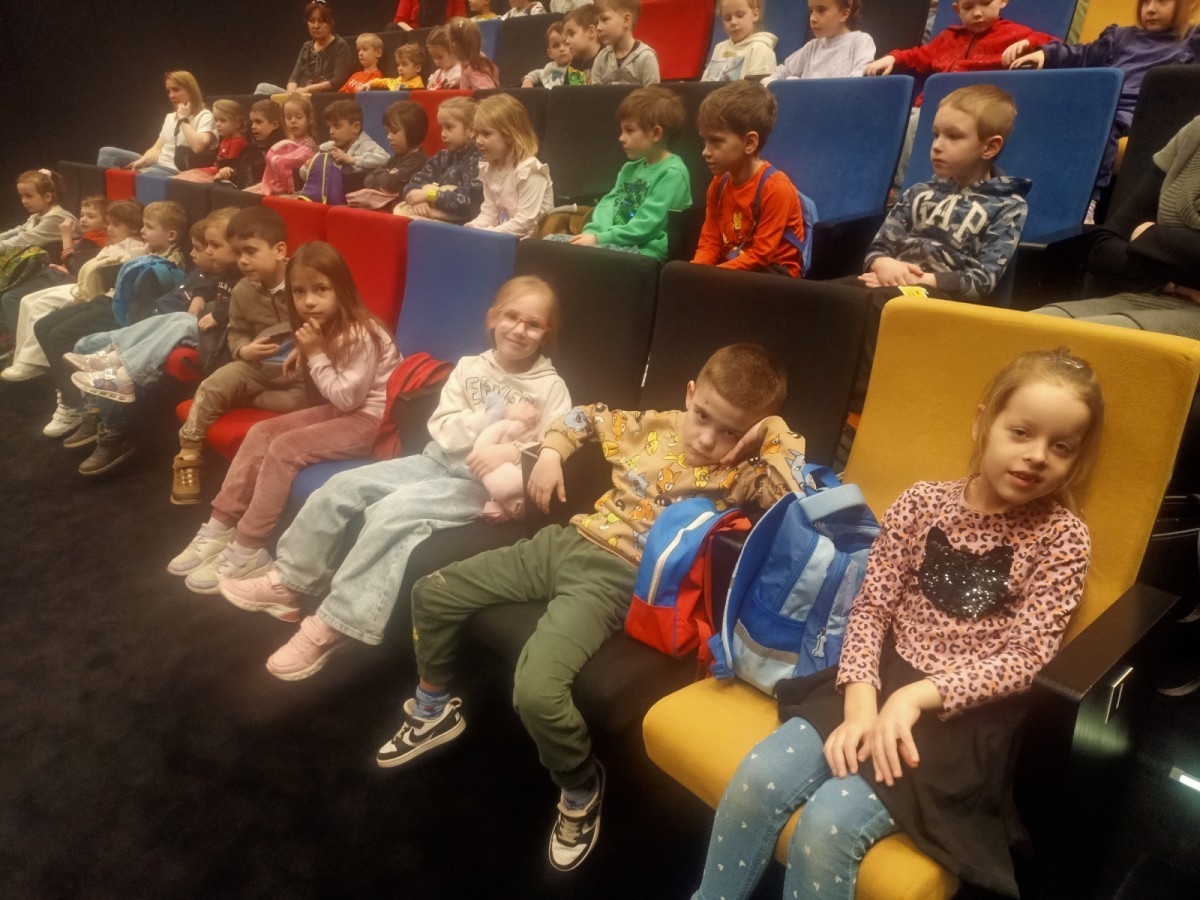 Na zakończenie wizyty przedszkolaki obejrzały bajkowe przedstawienie przygotowane przez uczniów klasy drugiej. Występ bardzo się wszystkim spodobał i został nagrodzony gromkimi brawami. Wycieczka była dla dzieci ciekawym i radosnym doświadczeniem, które pozwoliło im bliżej poznać szkołę i poczuć się jak prawdziwi uczniowie.